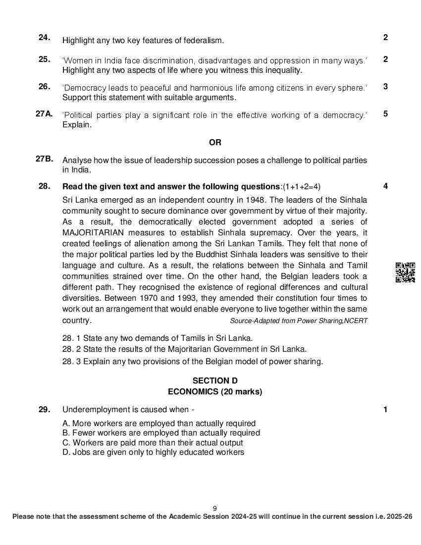 CBSE Class 10 Social Science Sample Paper Solution 2025 PDF Download Link – Click Here to Download Solutions / Marking Scheme