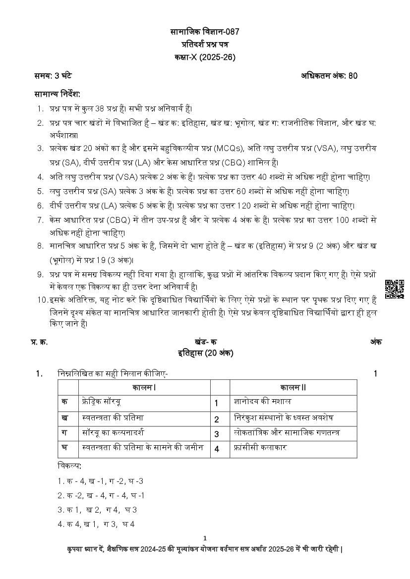 | Study Material Here | CBSE Sample Paper 2026 for Class 10 Social Science |