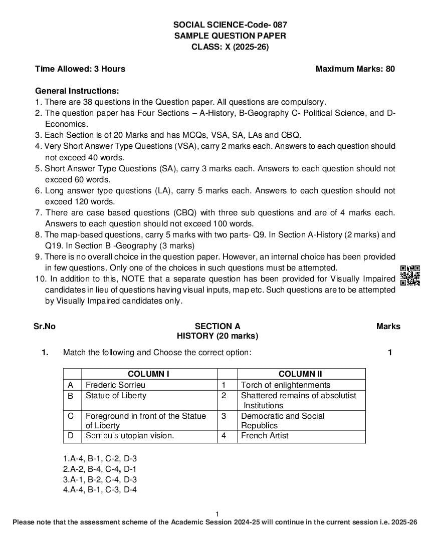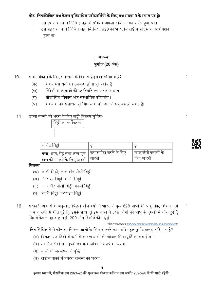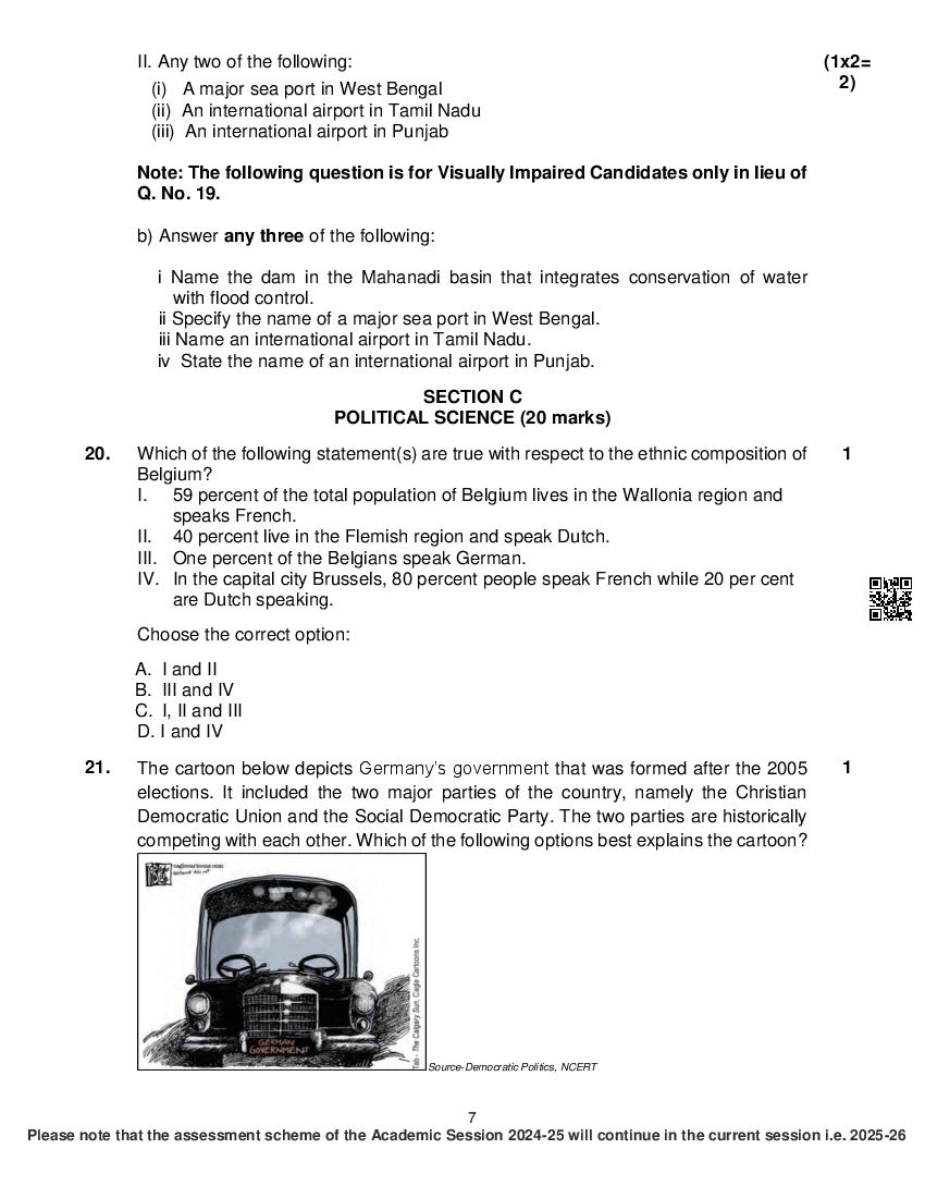 The complete CBSE class 10 Social Science sample paper 2026 is as follows. However the download link for cbse sample paper Social Science class 10 marking scheme is given above.