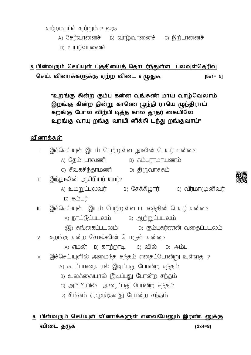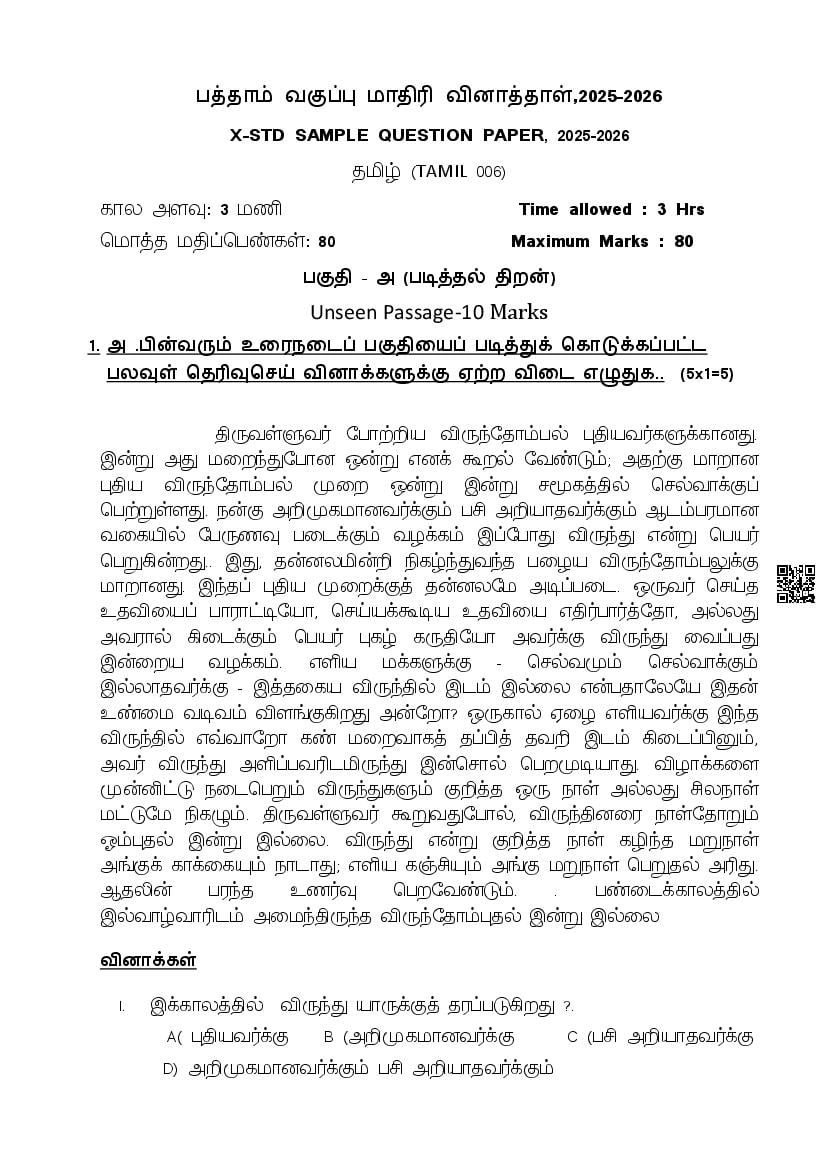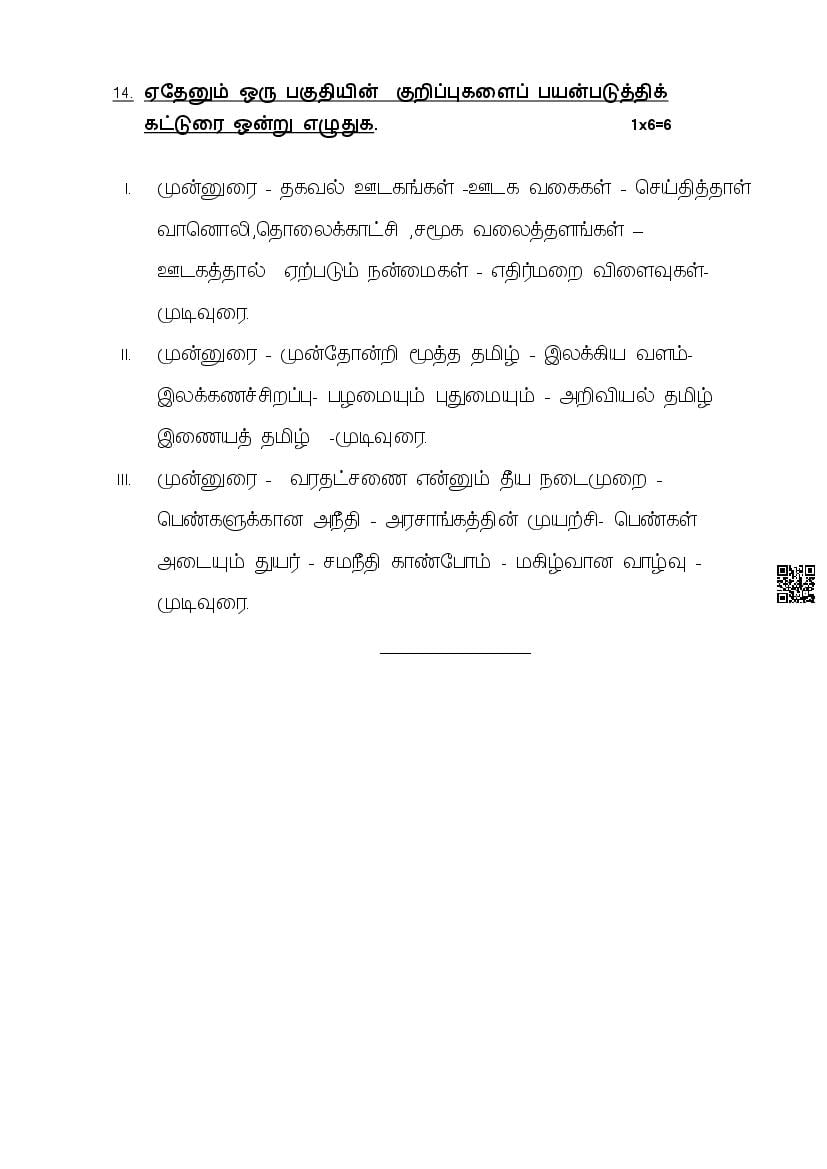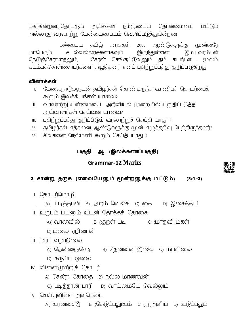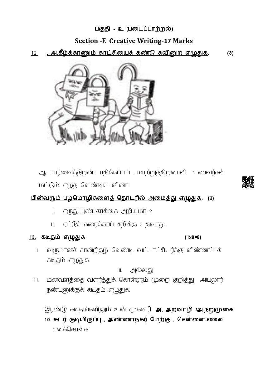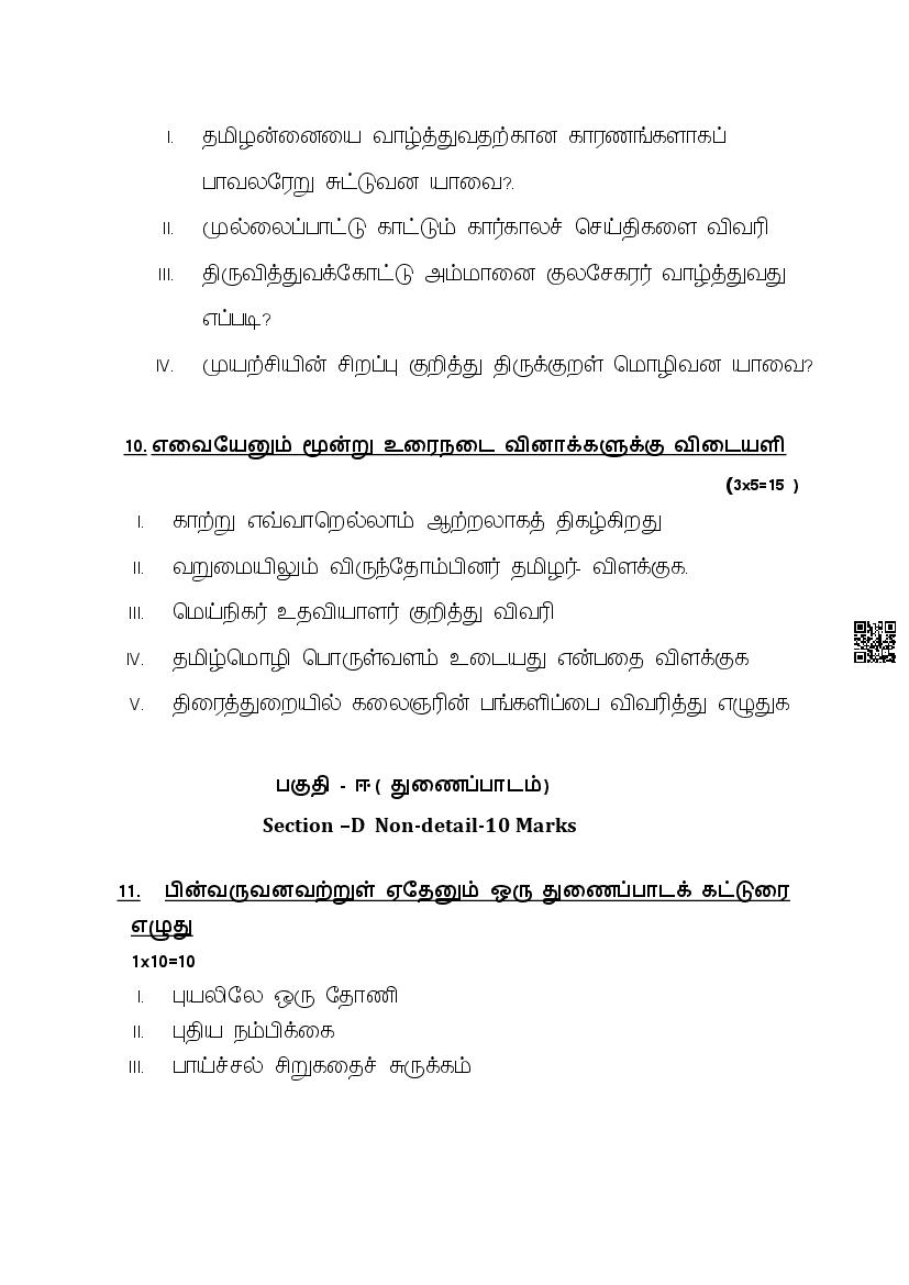 The complete CBSE class 10 Tamil sample paper 2026 is as follows. However the download link for cbse sample paper Tamil class 10 marking scheme is given above.