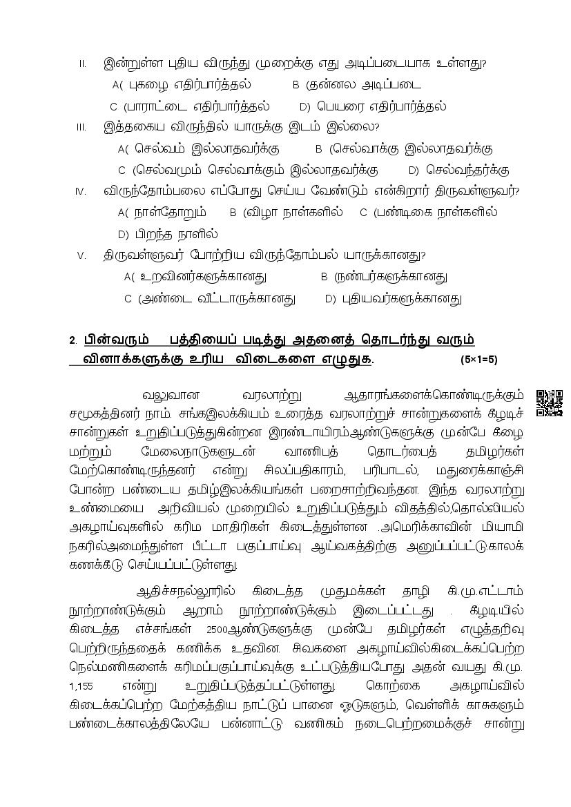 - The class 10 sample paper solutions for Tamil subject includes the correct answers of all questions asked in the model question paper.