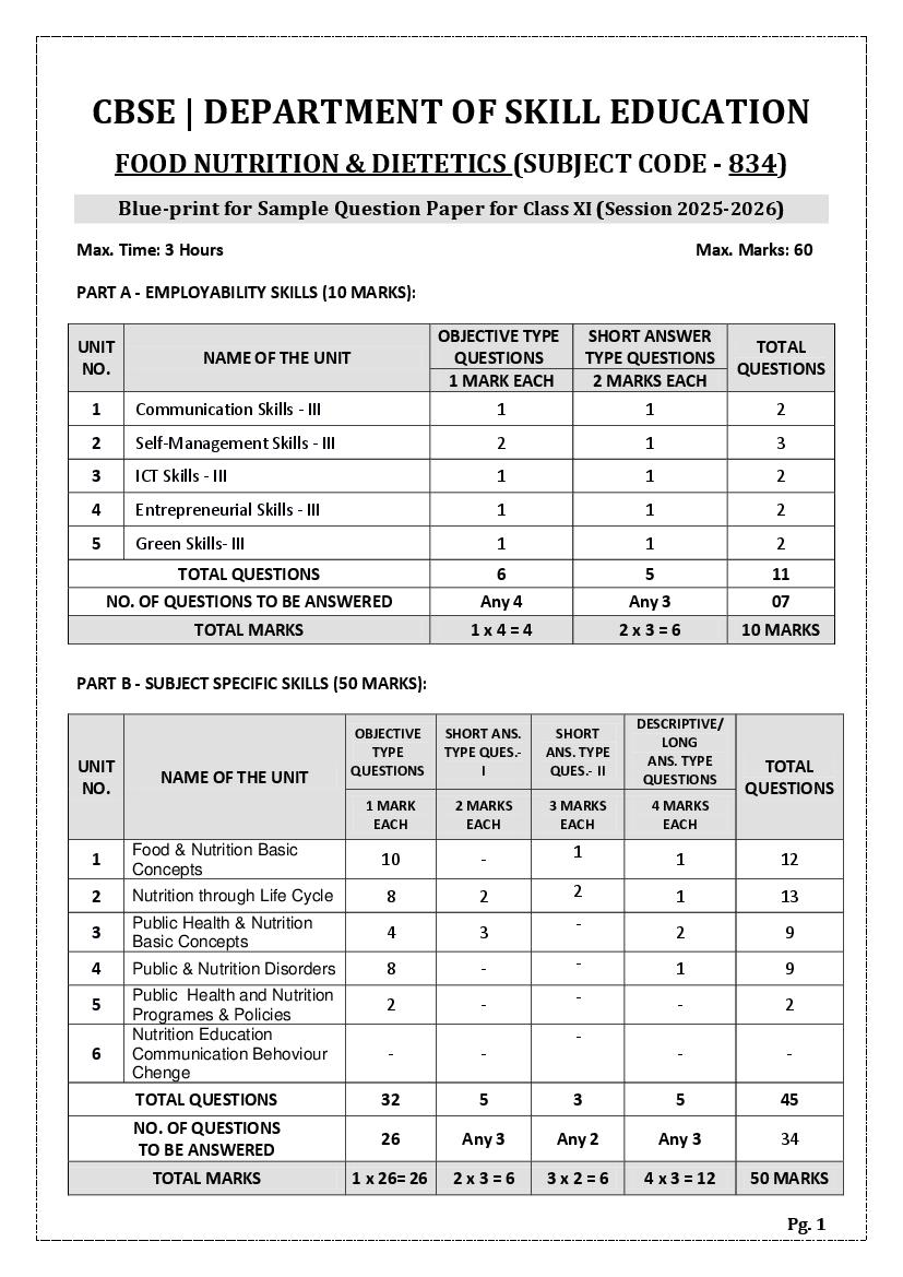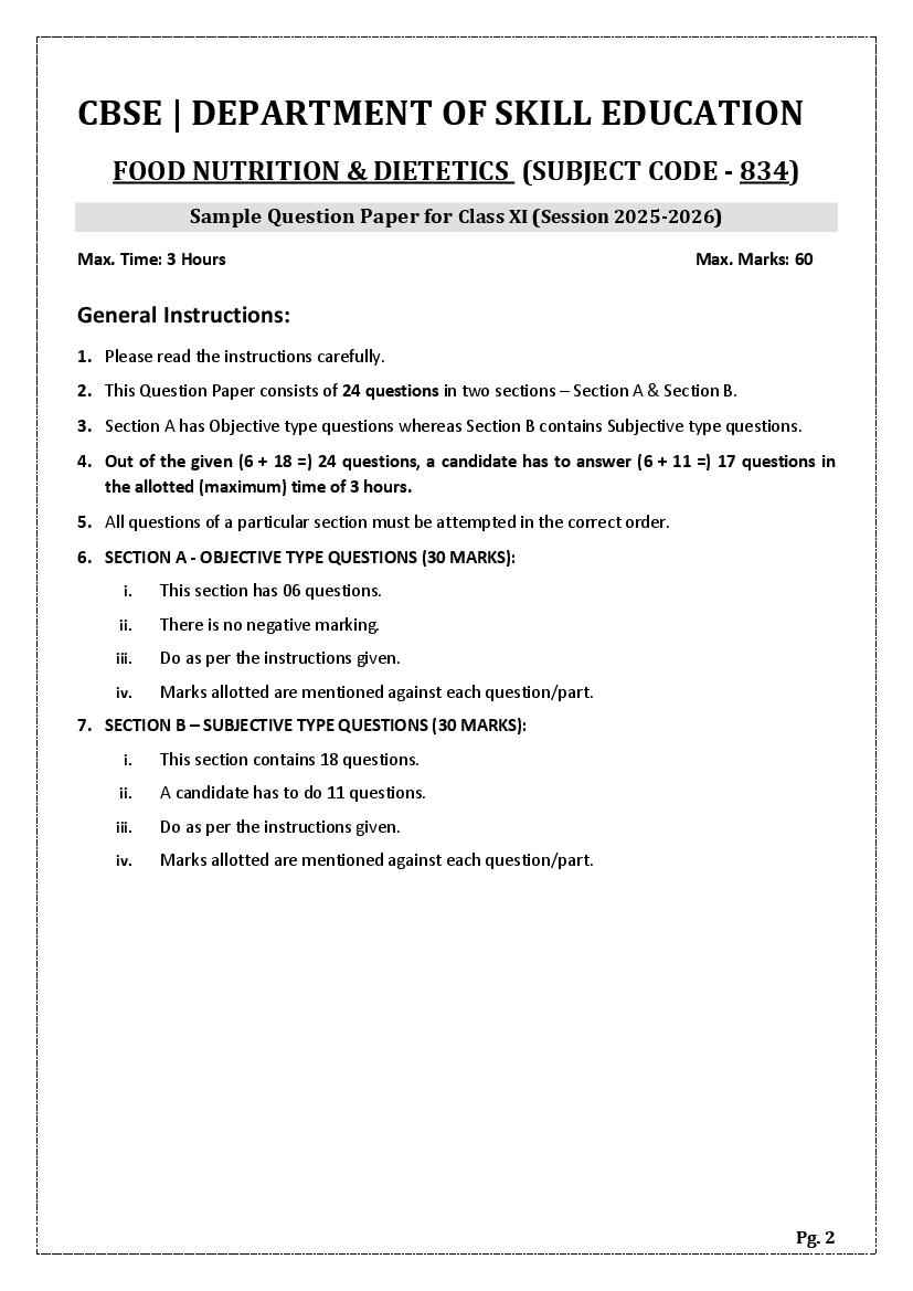 The complete CBSE class 11 Food Nutrition and Dietetics sample paper 2026 is as follows. However the download link for cbse sample paper Food Nutrition and Dietetics class 11 marking scheme is given above.
