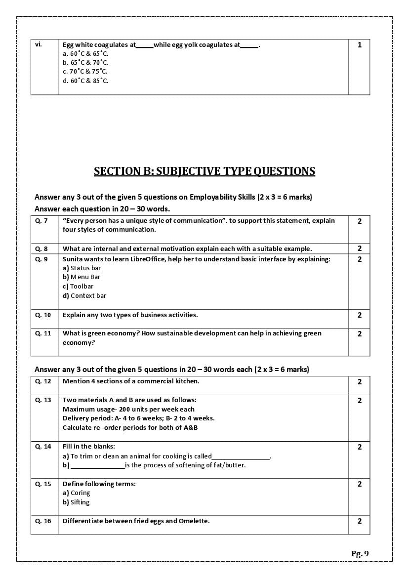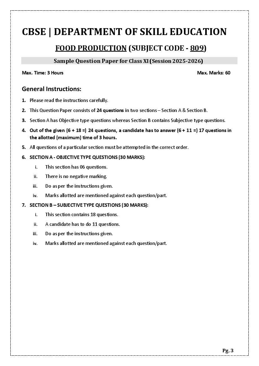 CBSE Class 11 Sample Paper 2026 for Food Production View Download