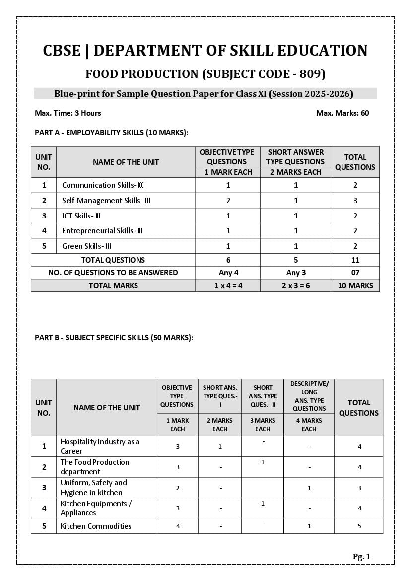 | Study Material Here | CBSE Sample Paper 2026 for Class 11 Food Production |