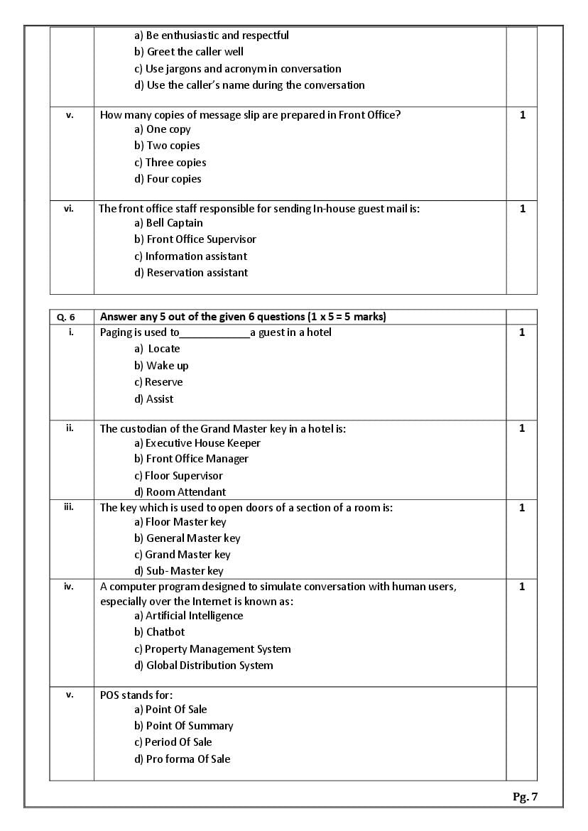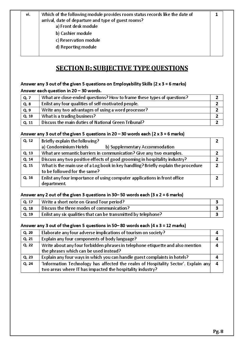 - It is also known as the CBSE sample paper Front Office Operations class 11 marking scheme as it also conveys how many marks you will get for steps or keywords in the answer.