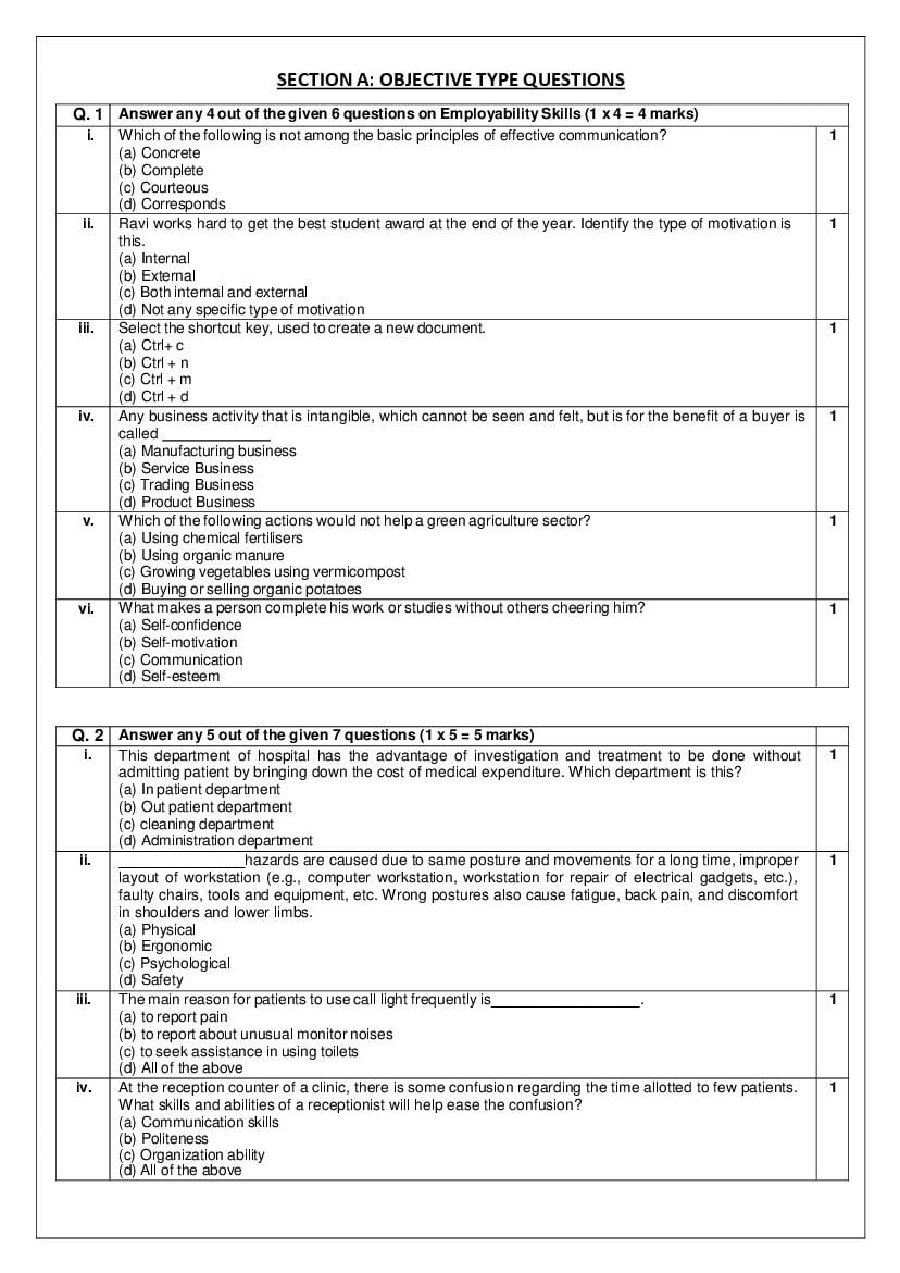 The complete CBSE class 11 Health Care sample paper 2026 is as follows. However the download link for cbse sample paper Health Care class 11 marking scheme is given above.