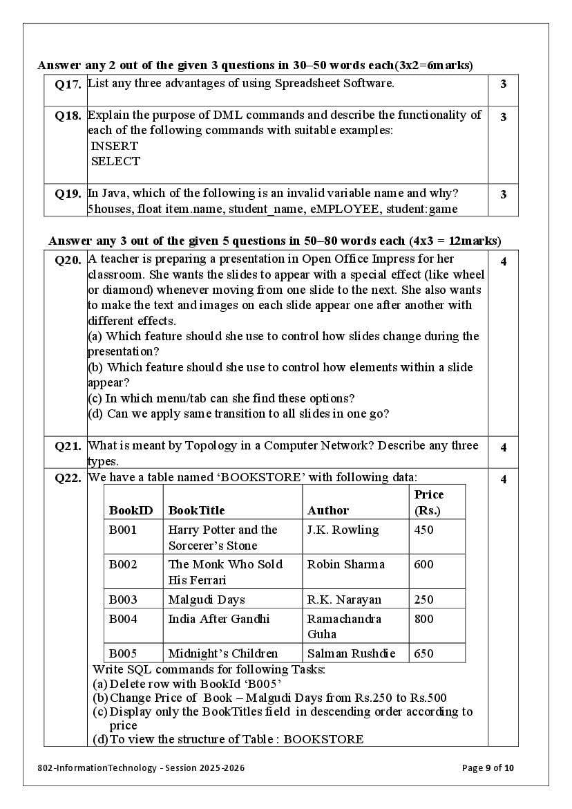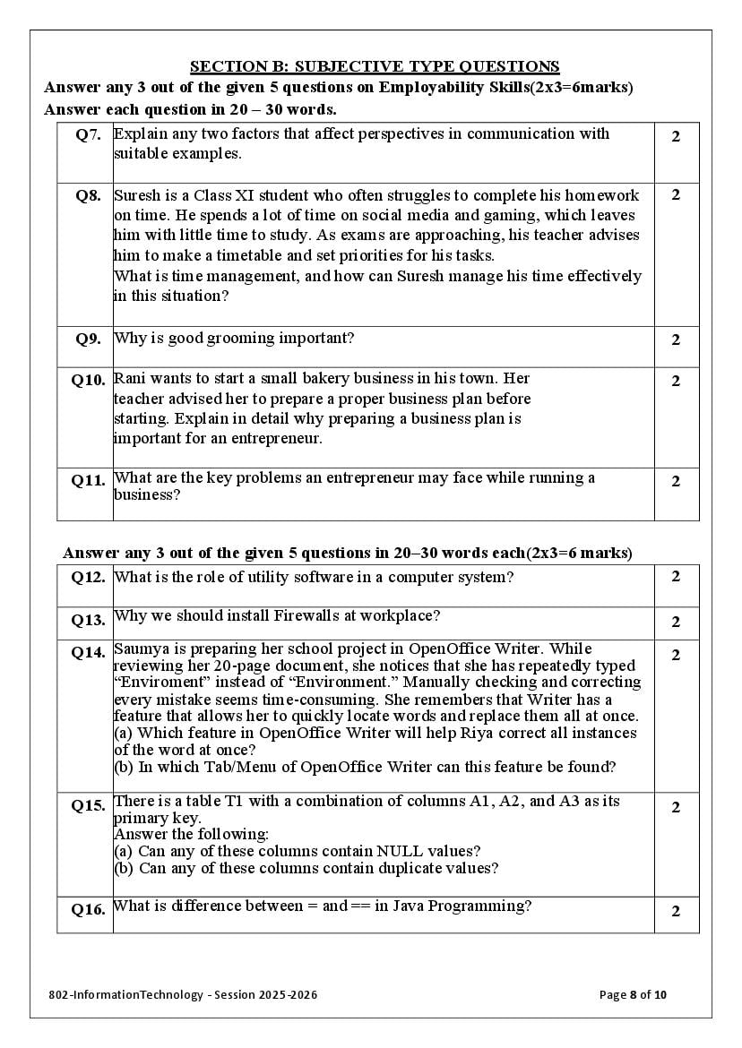 The complete CBSE class 11 Information Technology sample paper 2026 is as follows. However the download link for cbse sample paper Information Technology class 11 marking scheme is given above.