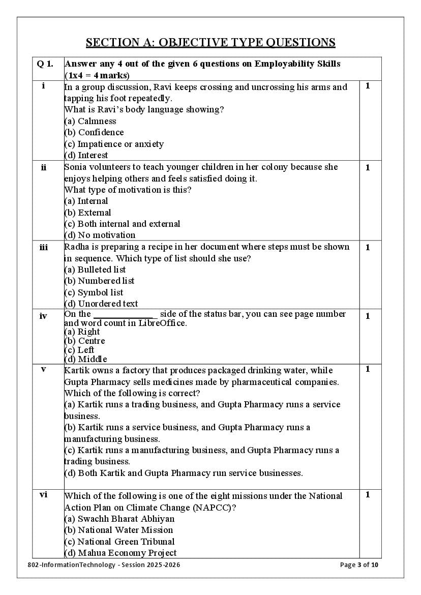 - CBSE has released the CBSE Information Technology sample paper class 11 2026 solutions at cbseacademic.nic.in.