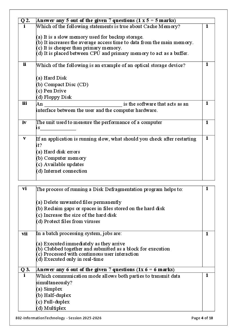 Class 11 Information Technology Sample Paper With Solutions 2026