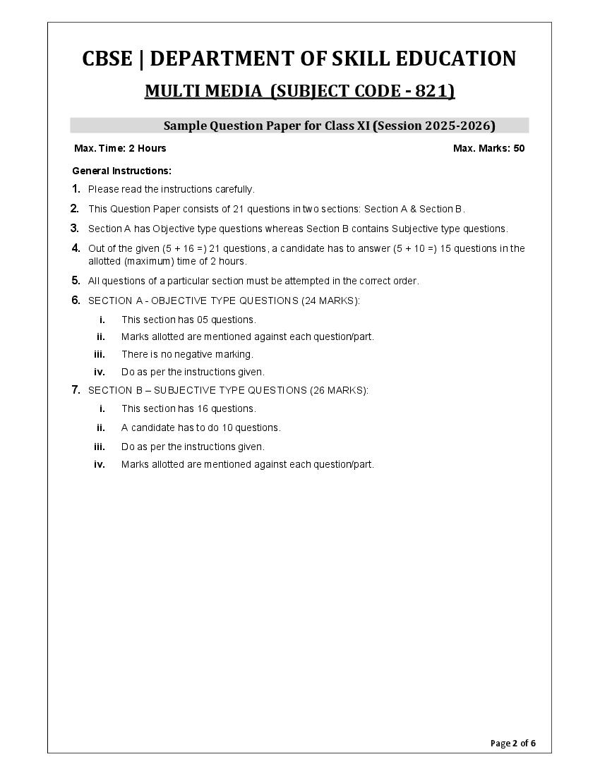 The complete CBSE class 11 Multi Media sample paper 2026 is as follows. However the download link for cbse sample paper Multi Media class 11 marking scheme is given above.