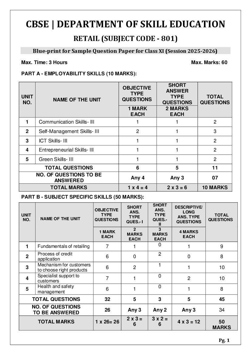 | Study Material Here | CBSE Sample Paper 2026 for Class 11 Retail |