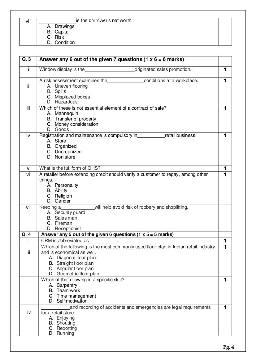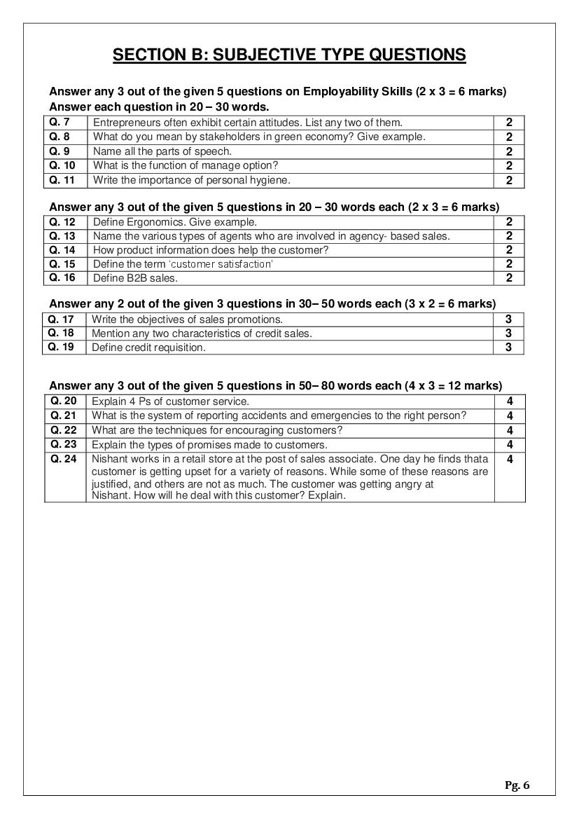 The complete CBSE class 11 Retail sample paper 2026 is as follows. However the download link for cbse sample paper Retail class 11 marking scheme is given above.
