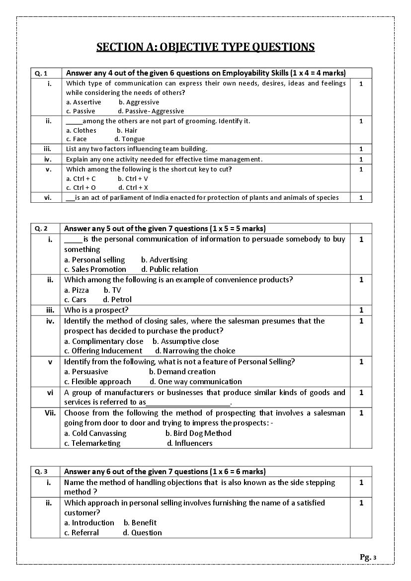 - Solve the CBSE Previous Year Question Papers Class 11 Salesmanship to know what type of questions were asked last year.