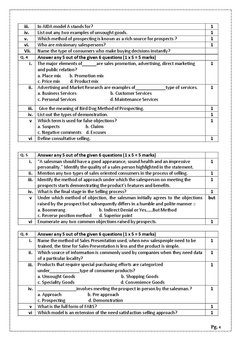 - It is also known as the CBSE sample paper Salesmanship class 11 marking scheme as it also conveys how many marks you will get for steps or keywords in the answer.