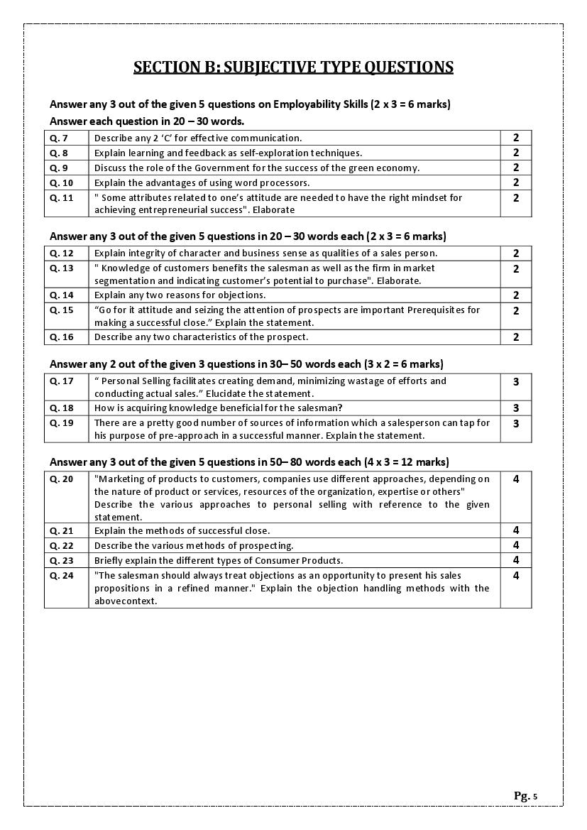 The complete CBSE class 11 Salesmanship sample paper 2026 is as follows. However the download link for cbse sample paper Salesmanship class 11 marking scheme is given above.