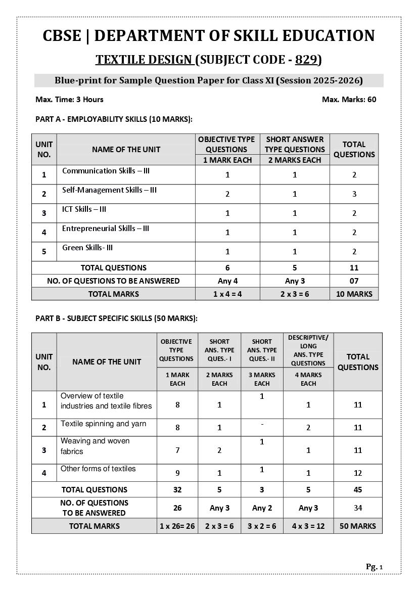 | Study Material Here | CBSE Sample Paper 2026 for Class 11 Textile Design |