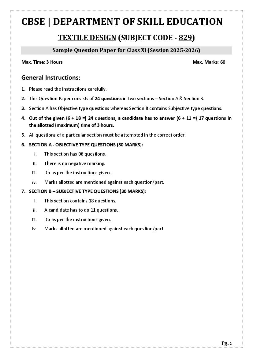 The complete CBSE class 11 Textile Design sample paper 2026 is as follows. However the download link for cbse sample paper Textile Design class 11 marking scheme is given above.