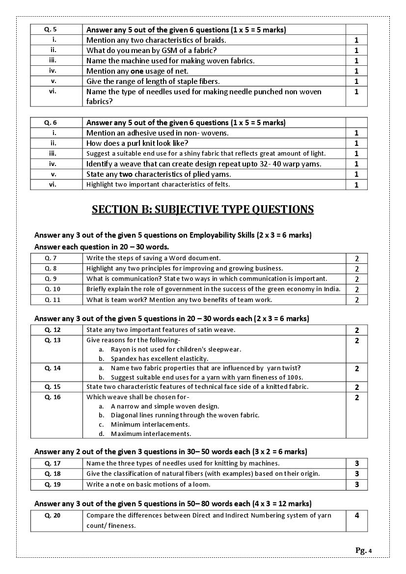 - The class 11 sample paper solutions for Textile Design subject includes the correct answers of all questions asked in the model question paper.