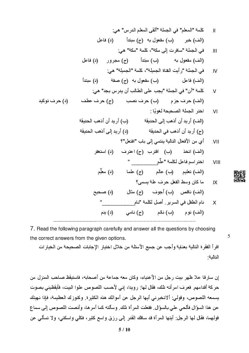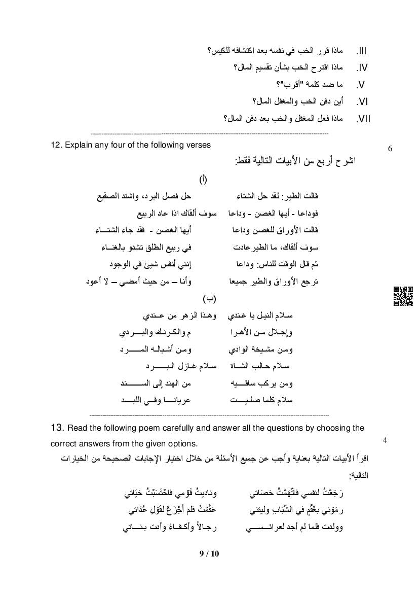 The complete CBSE class 12 Arabic sample paper 2026 is as follows. However the download link for cbse sample paper Arabic class 12 marking scheme is given above.