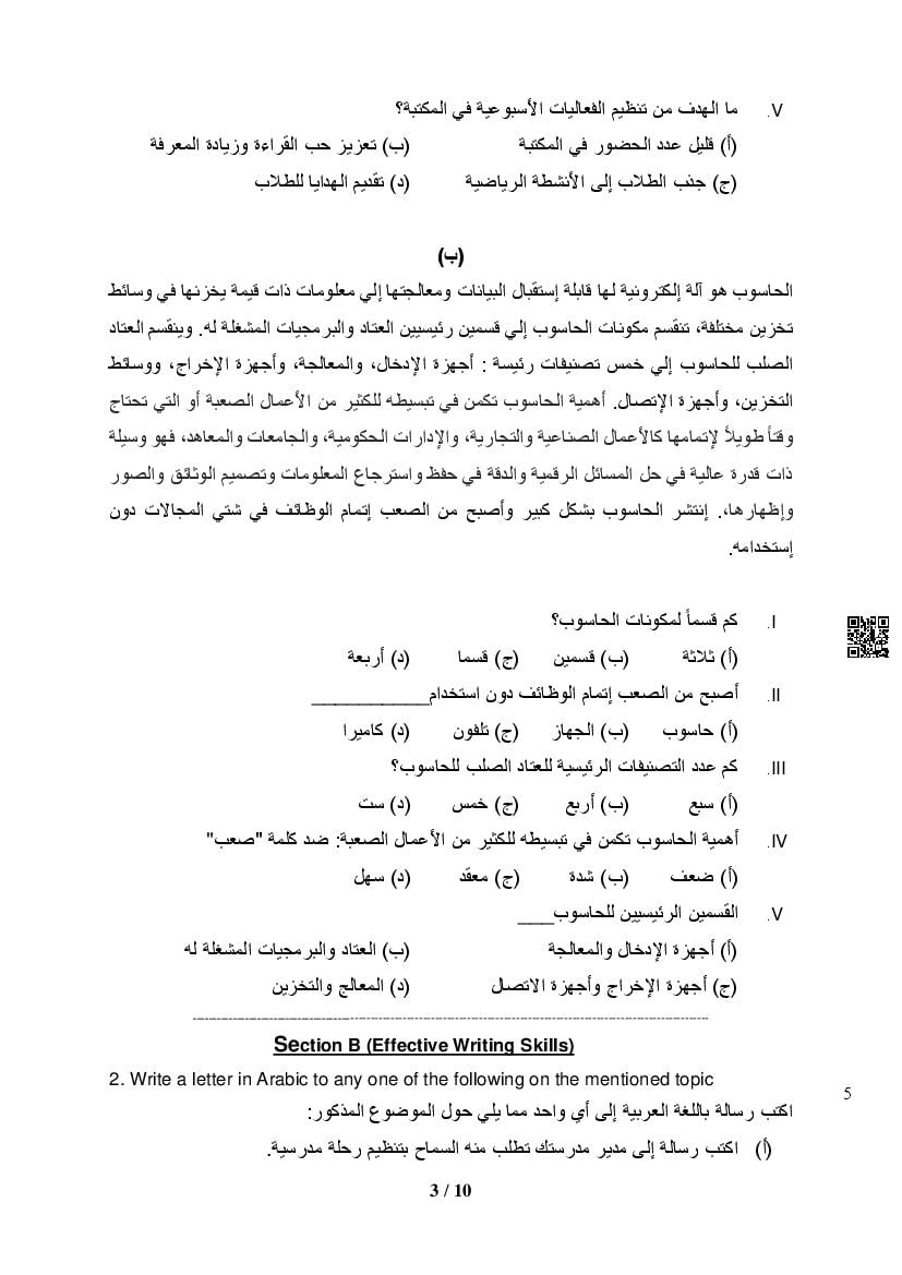 - The class 12 sample paper solutions for Arabic subject includes the correct answers of all questions asked in the model question paper.