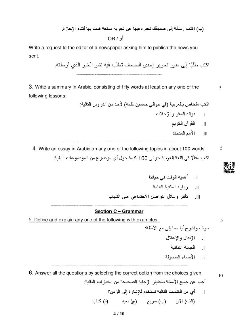 - Solve the CBSE Previous Year Question Papers Class 12 Arabic to know what type of questions were asked last year.
