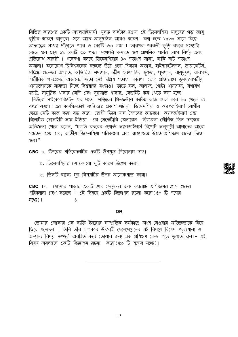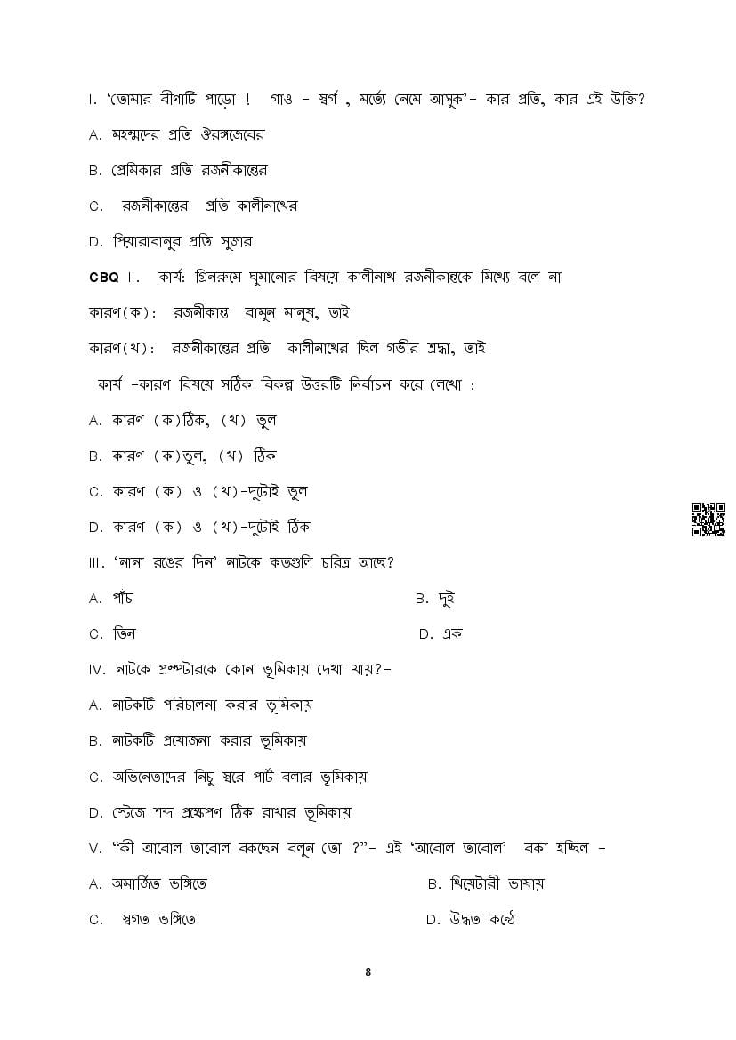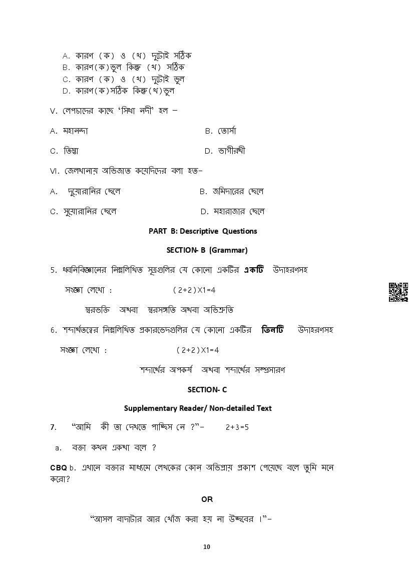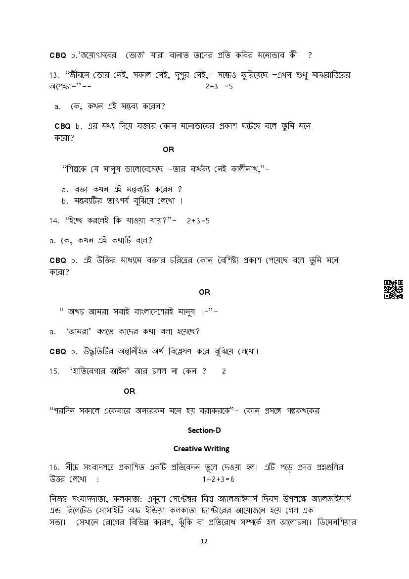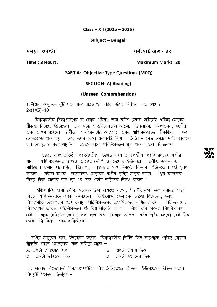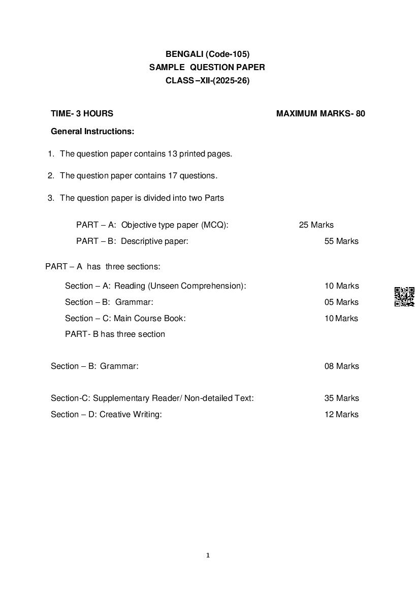 The complete CBSE class 12 Bengali sample paper 2026 is as follows. However the download link for cbse sample paper Bengali class 12 marking scheme is given above.