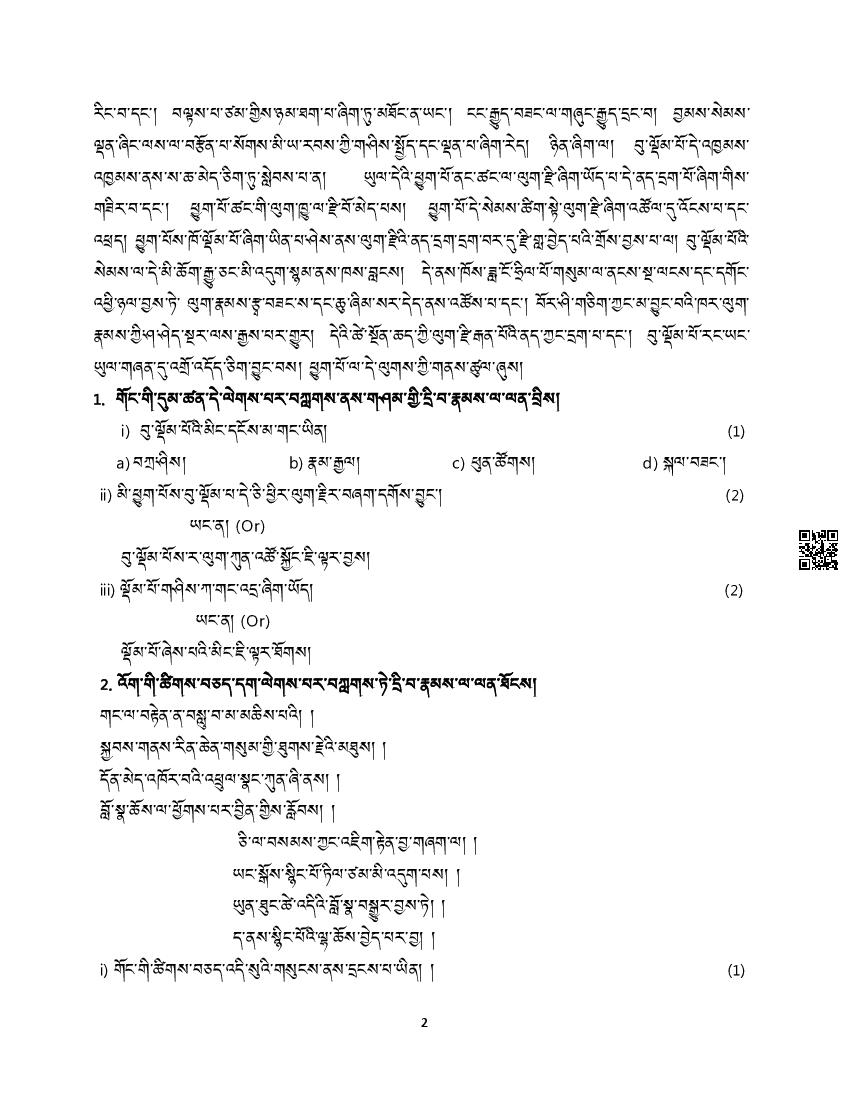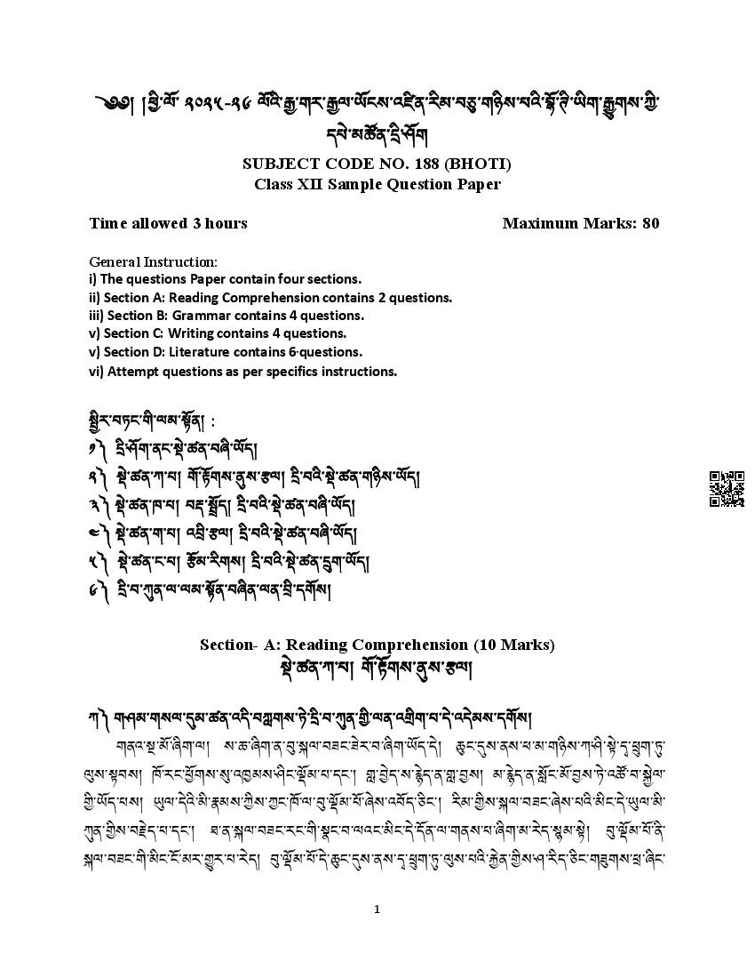 The complete CBSE class 12 Bhoti sample paper 2026 is as follows. However the download link for cbse sample paper Bhoti class 12 marking scheme is given above.