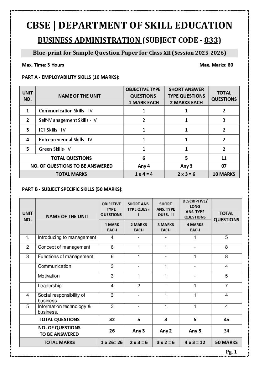 | Study Material Here | CBSE Sample Paper 2026 for Class 12 Business Administration |