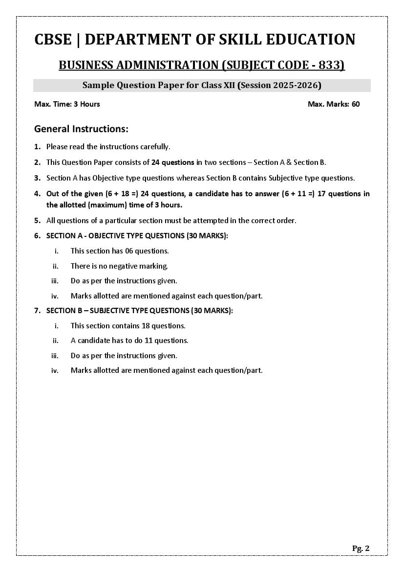 CBSE Class 12 Sample Paper 2026 for Business Administration View Download