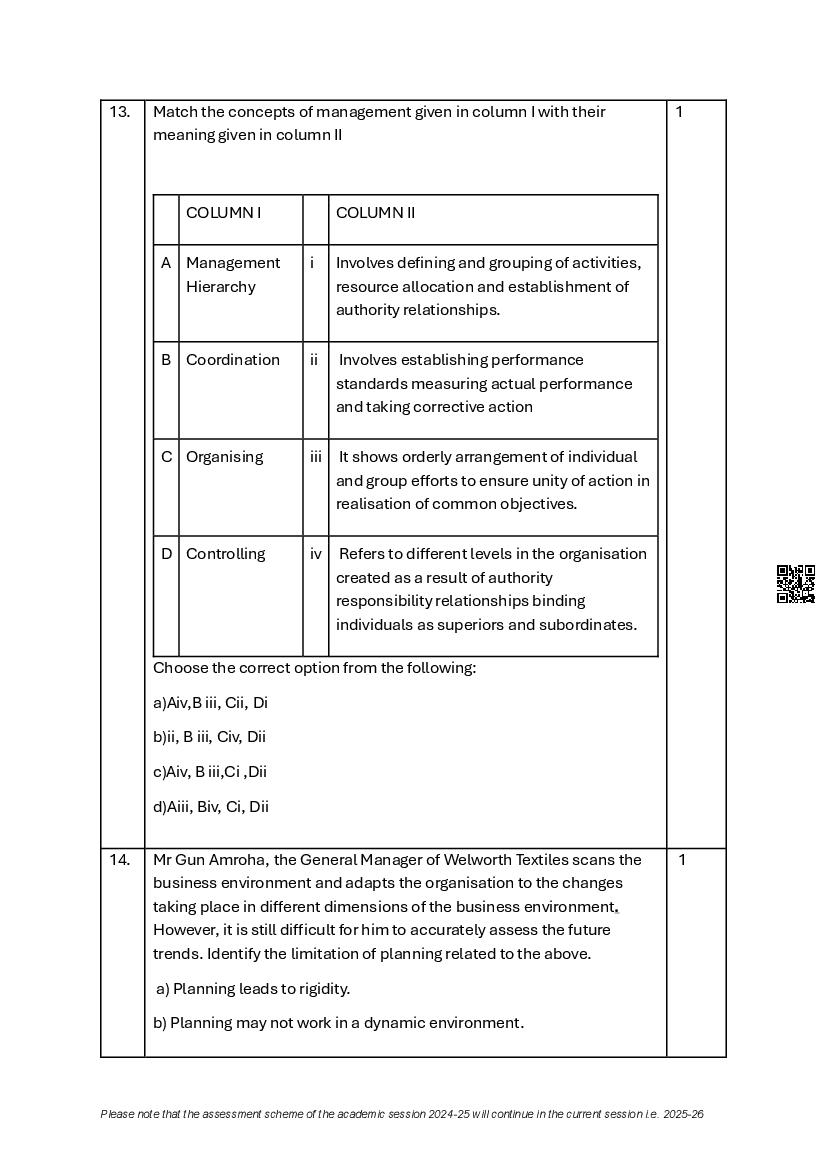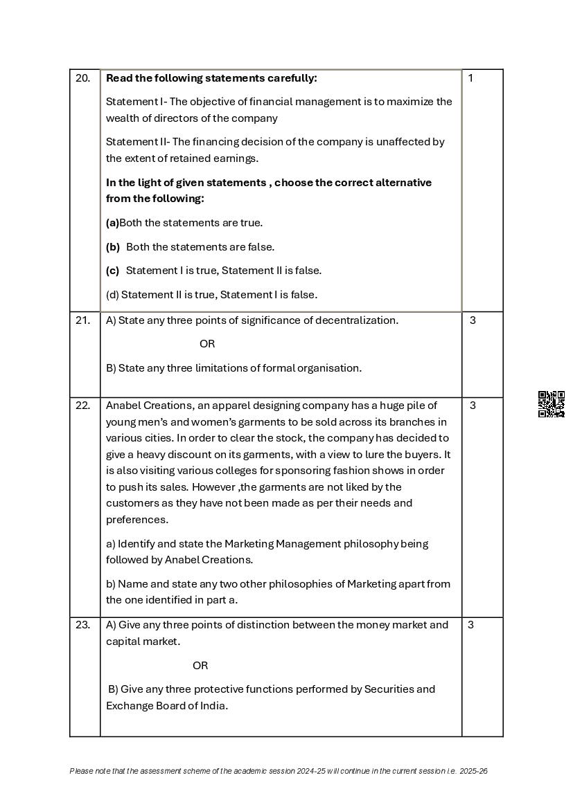 CBSE Class 12 Business Studies Sample Paper Solution 2025 PDF Download Link – Click Here to Download Solutions / Marking Scheme
