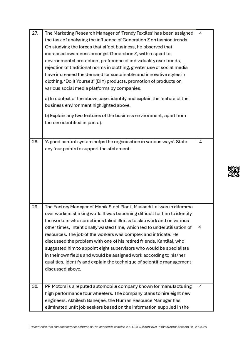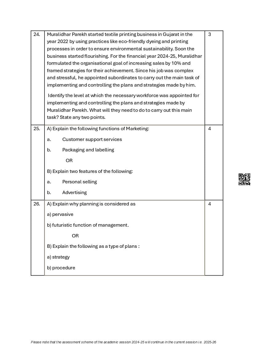 The complete CBSE class 12 Business Studies sample paper 2026 is as follows. However the download link for cbse sample paper Business Studies class 12 marking scheme is given above.