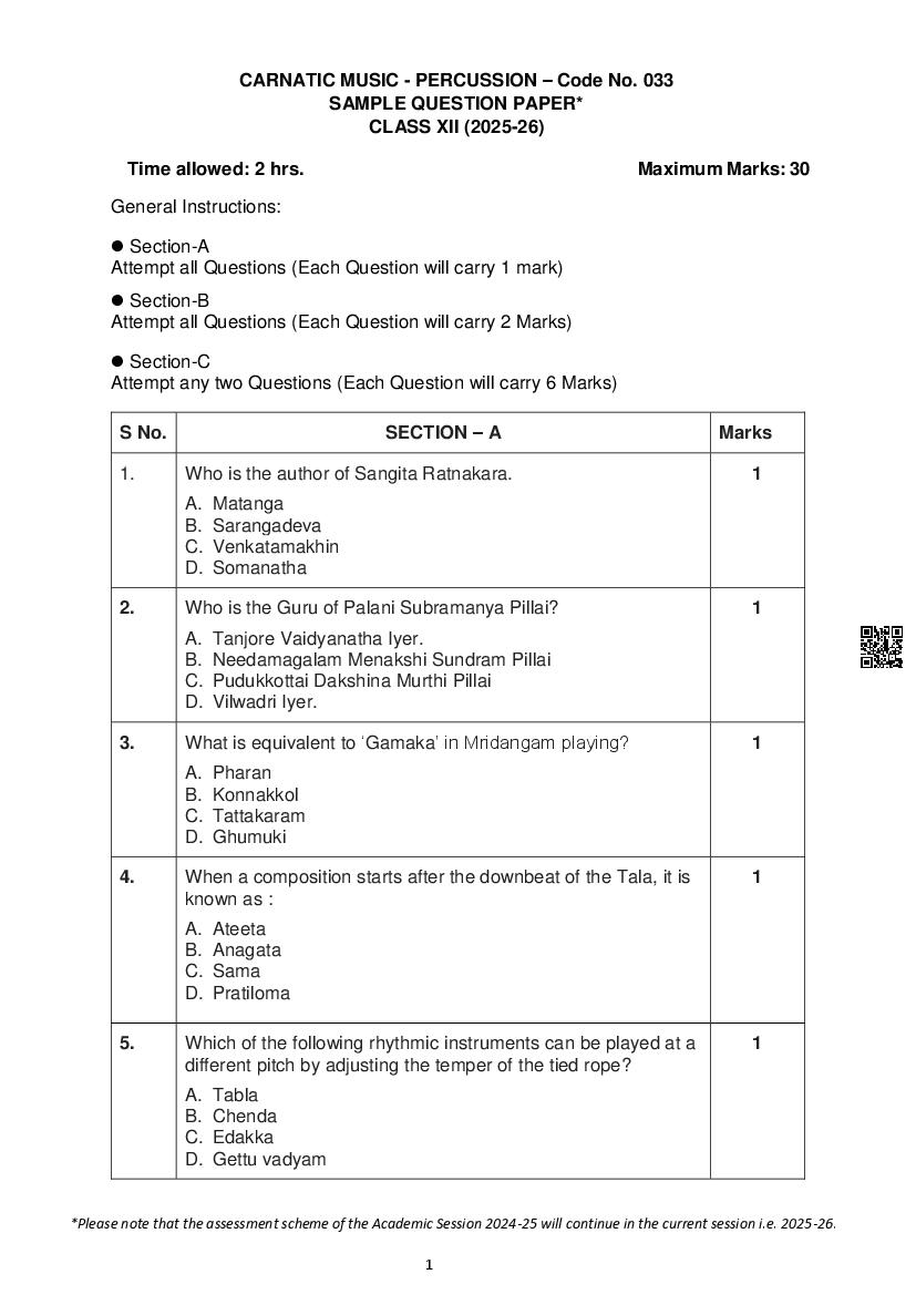 If you have any queries on CBSE Class 12 Carnatic Music Percussion Instrument Sample Paper 2026, then please ask in comments below.