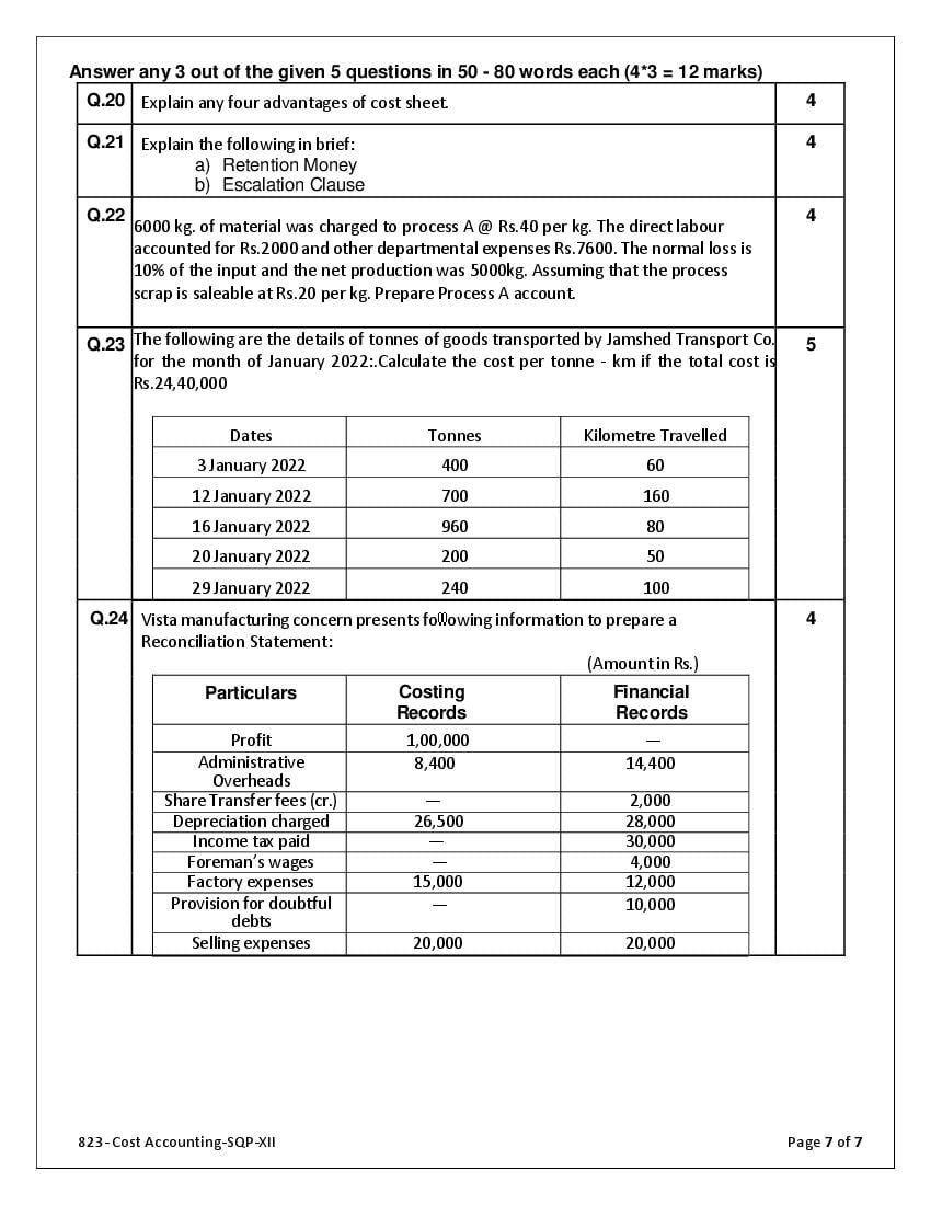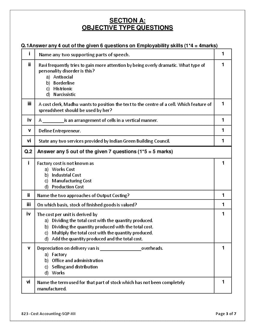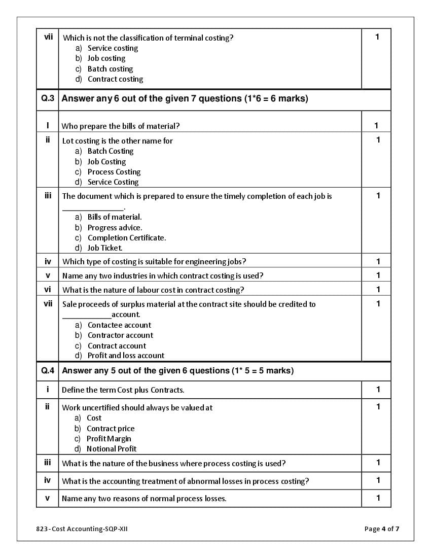 The complete CBSE class 12 Cost Accounting sample paper 2026 is as follows. However the download link for cbse sample paper Cost Accounting class 12 marking scheme is given above.