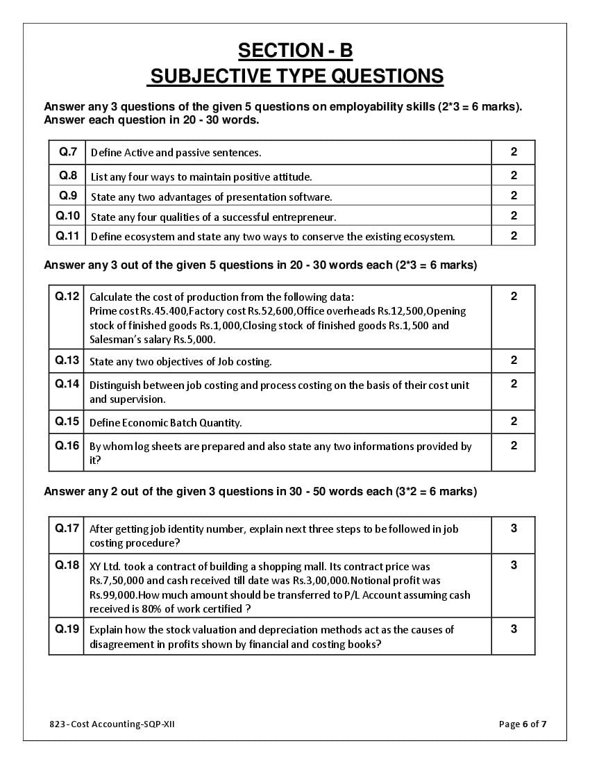 - The class 12 sample paper solutions for Cost Accounting subject includes the correct answers of all questions asked in the model question paper.