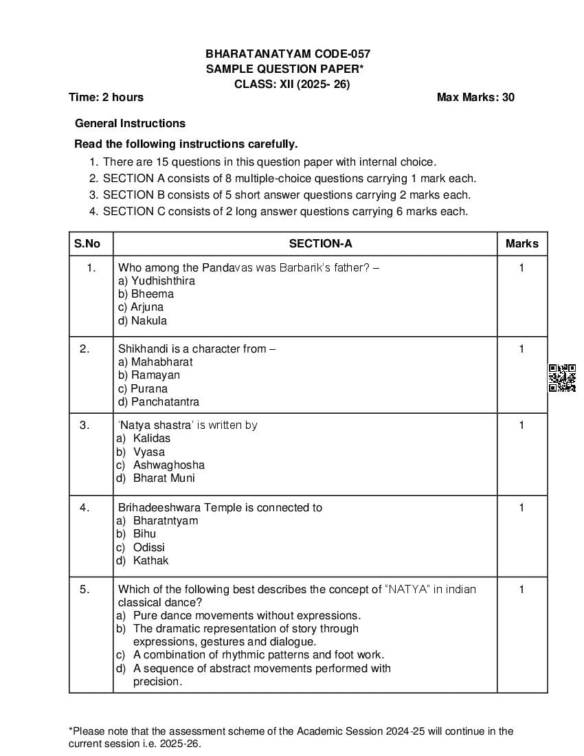 - CBSE has released the CBSE Dance sample paper class 12 2026 solutions at cbseacademic.nic.in.