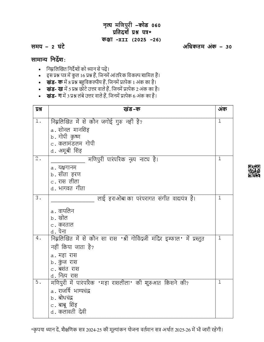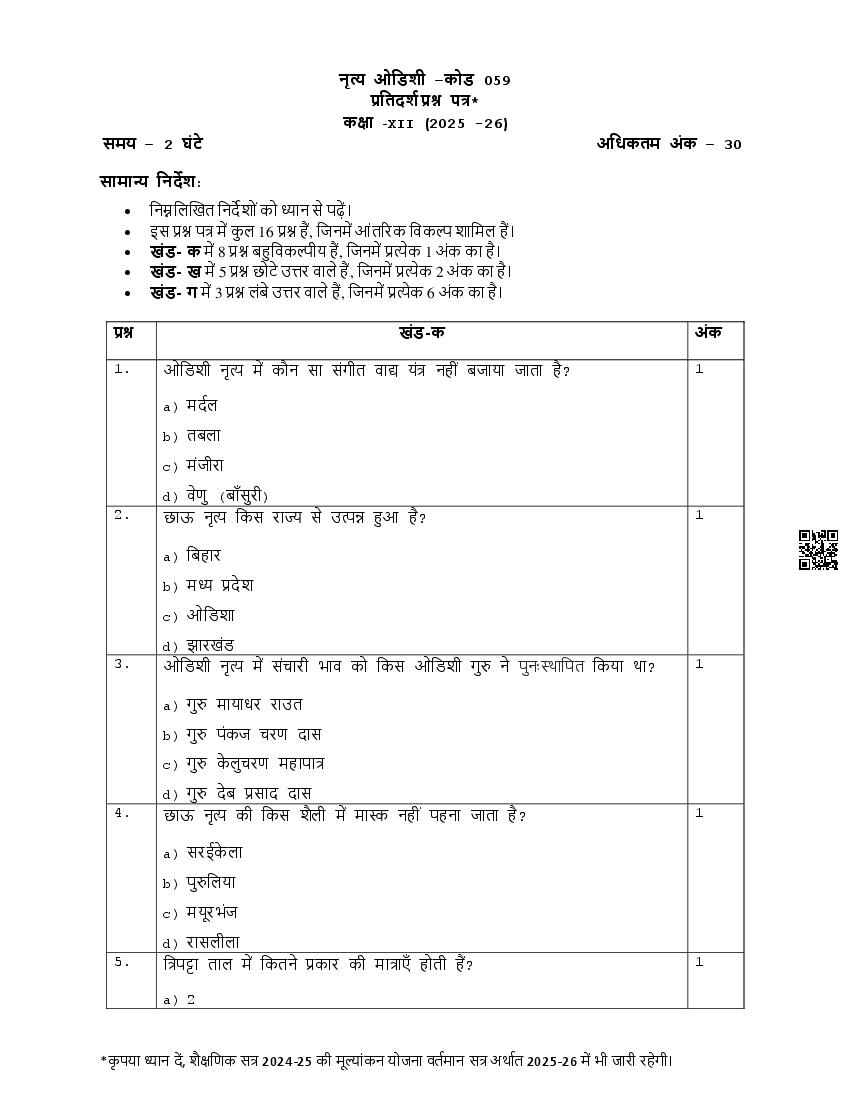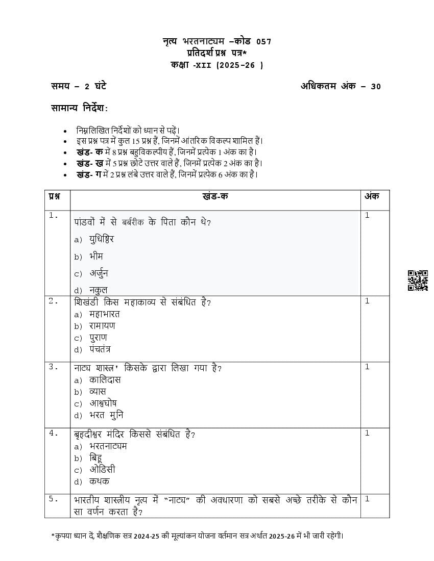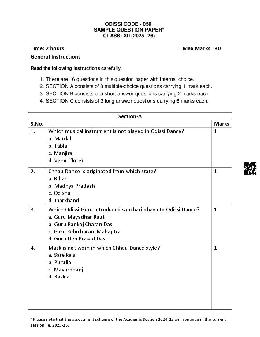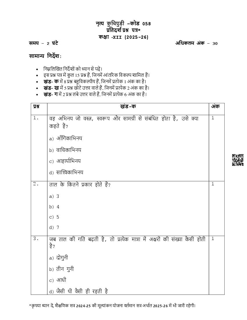 The complete CBSE class 12 Dance sample paper 2026 is as follows. However the download link for cbse sample paper Dance class 12 marking scheme is given above.