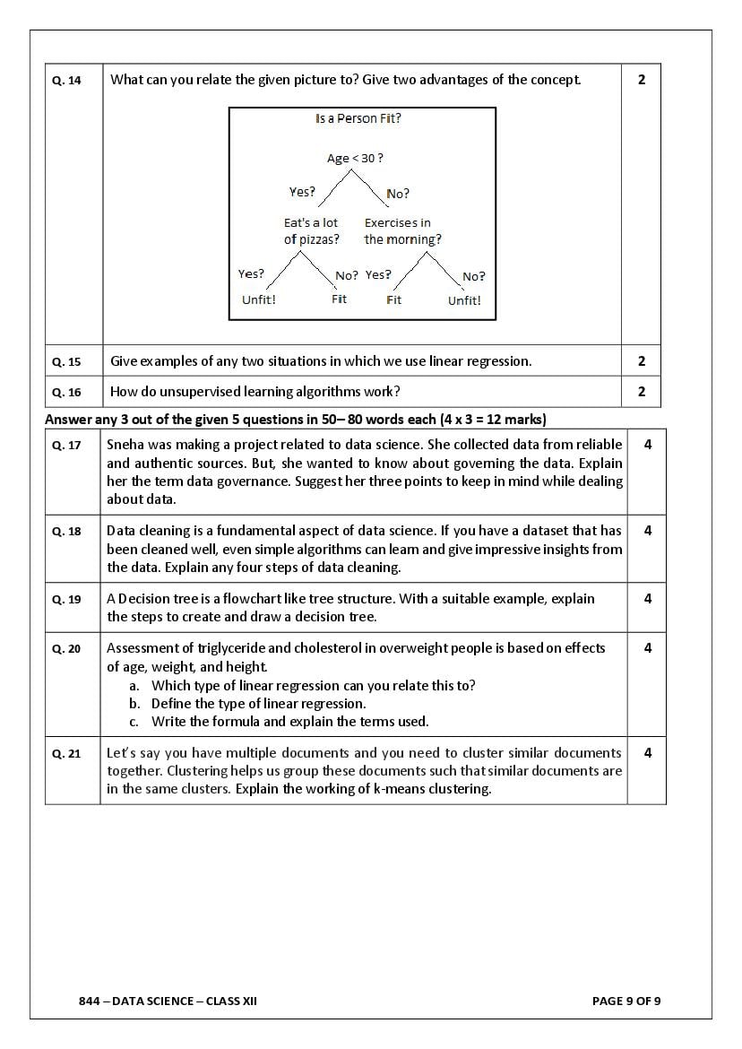 - It is also known as the CBSE sample paper Data Science class 12 marking scheme as it also conveys how many marks you will get for steps or keywords in the answer.