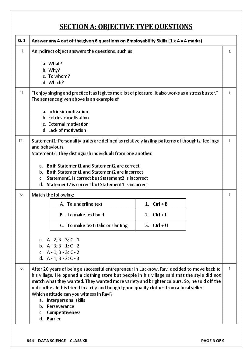 The complete CBSE class 12 Data Science sample paper 2026 is as follows. However the download link for cbse sample paper Data Science class 12 marking scheme is given above.