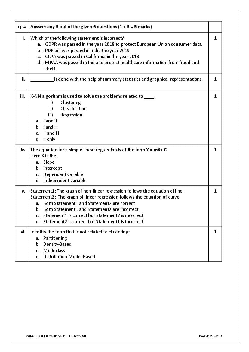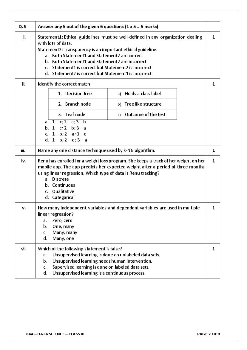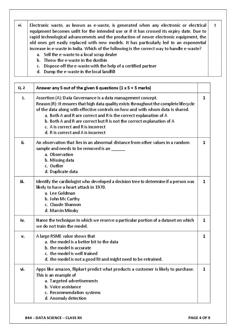 - The class 12 sample paper solutions for Data Science subject includes the correct answers of all questions asked in the model question paper.