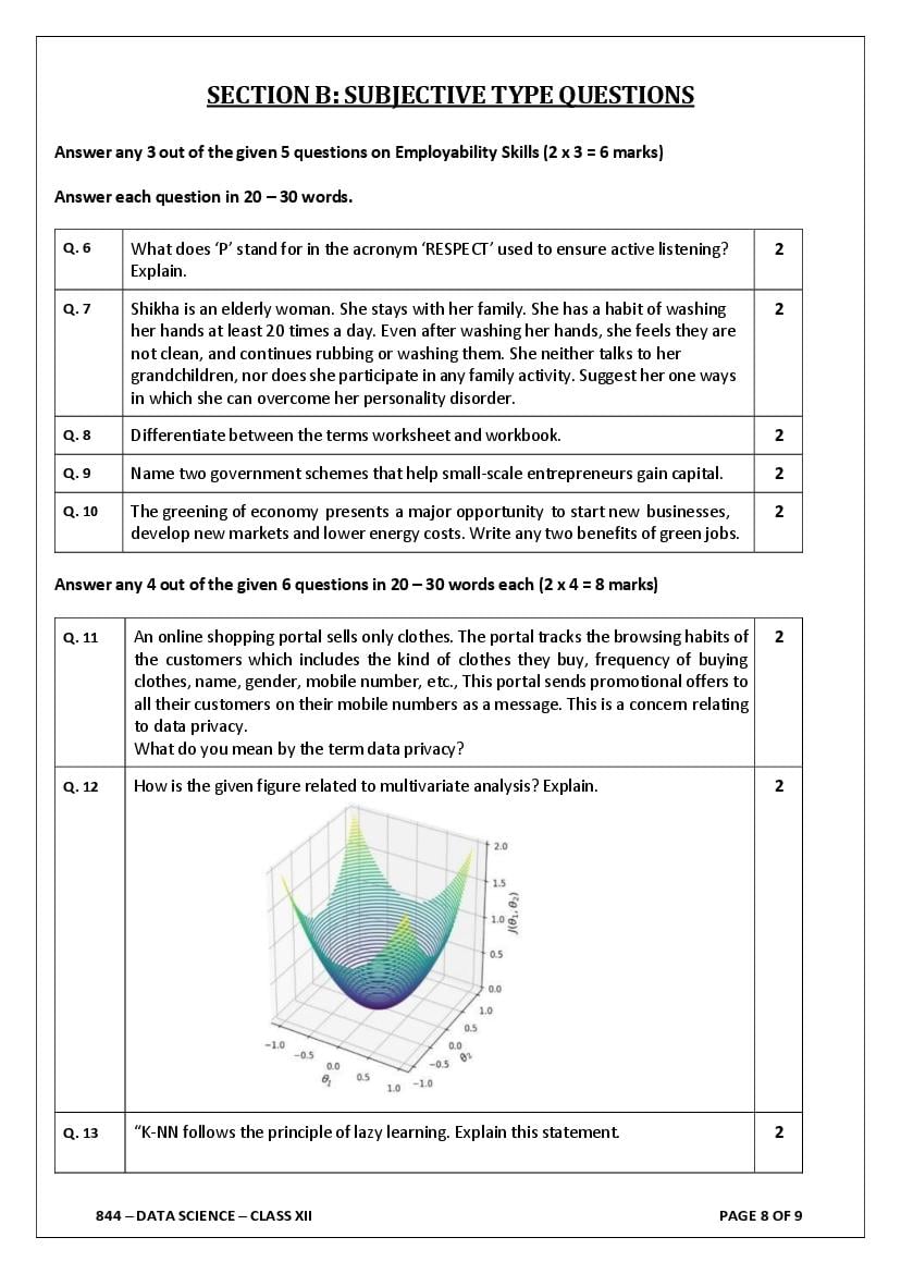 Class 12 Data Science Sample Paper With Solutions 2026