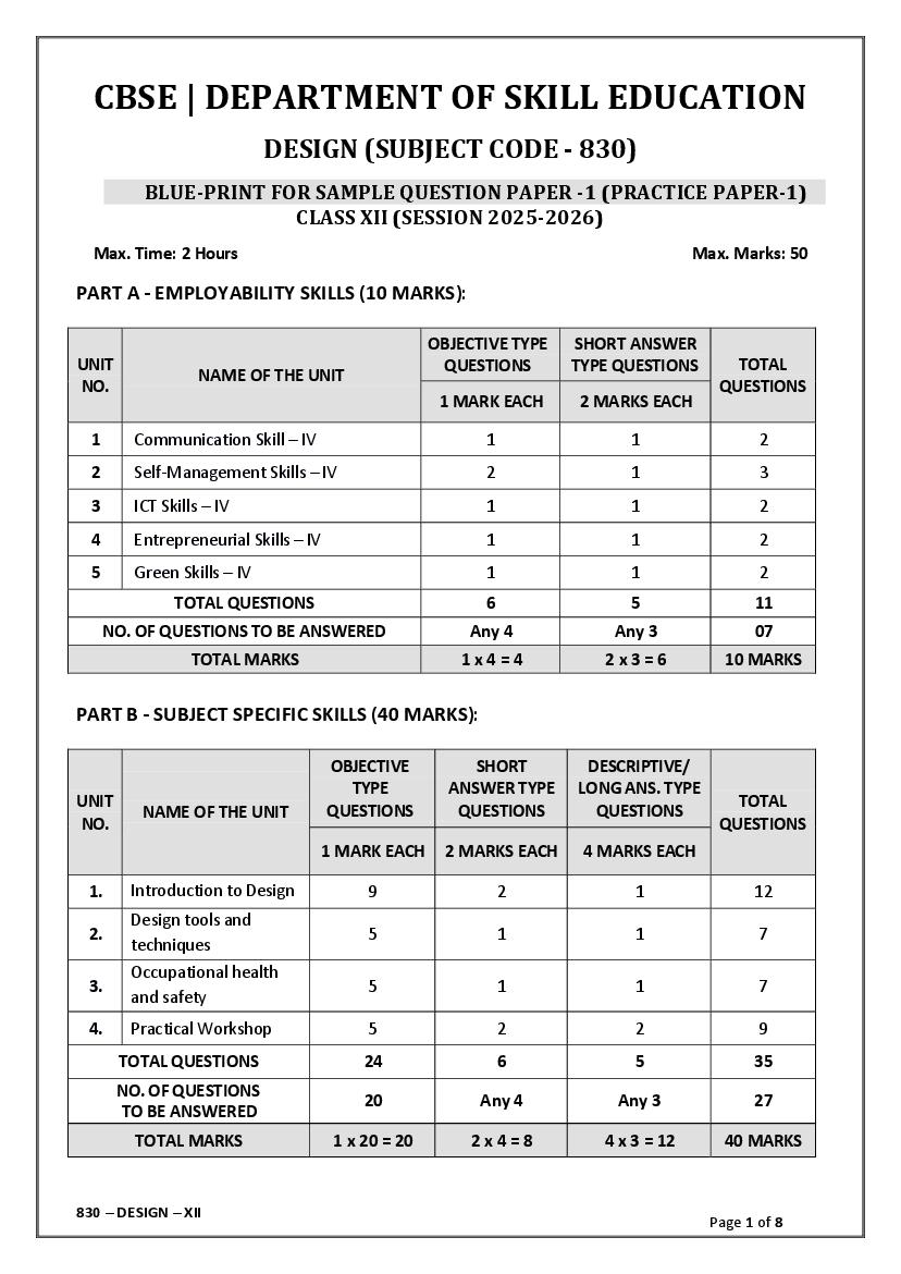 CBSE Class 12 Design Sample Paper 2026 – An Overview
