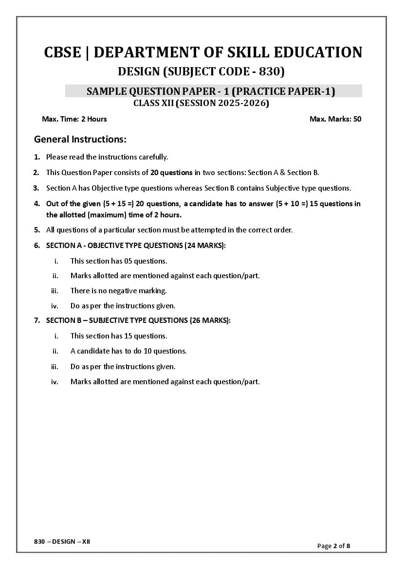 CBSE Class 12 Sample Paper 2026 for Design View Download