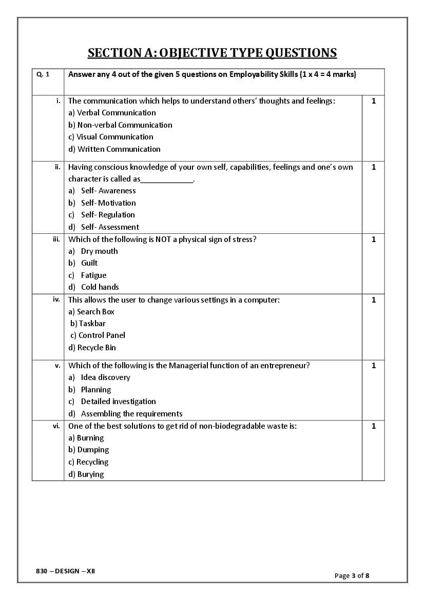 Here on this page you got the Design model question paper. However there are more subjects to study in 12th standard. Therefore here are the subject-wise specimen paper of CBSE for class 12 students.