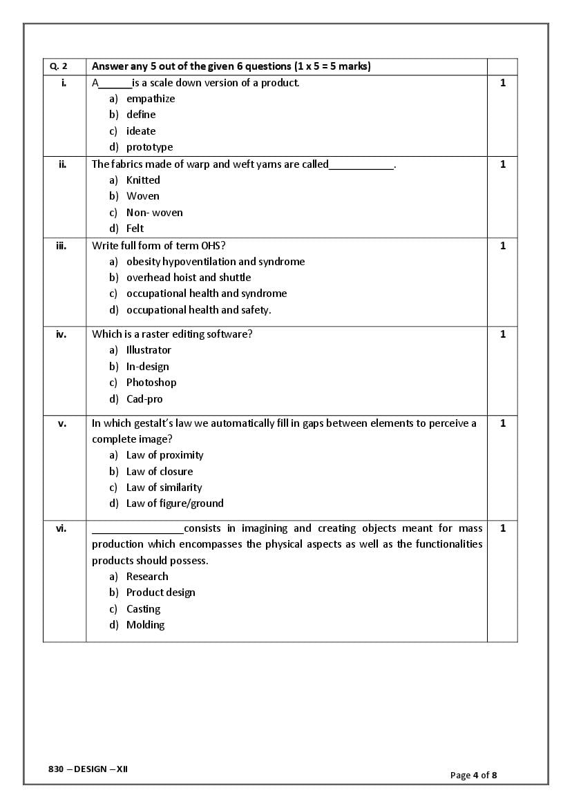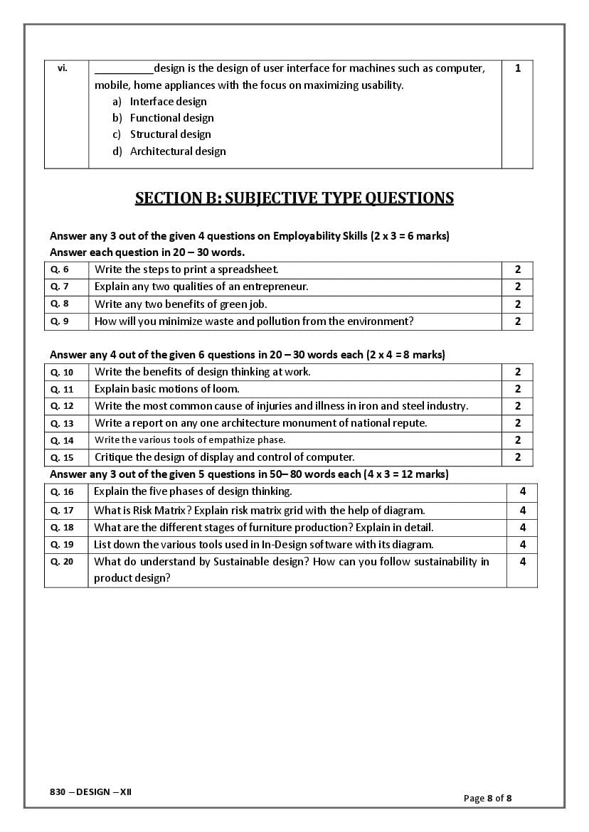 - The class 12 sample paper solutions for Design subject includes the correct answers of all questions asked in the model question paper.