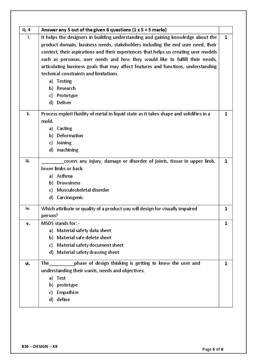 The complete CBSE class 12 Design sample paper 2026 is as follows. However the download link for cbse sample paper Design class 12 marking scheme is given above.