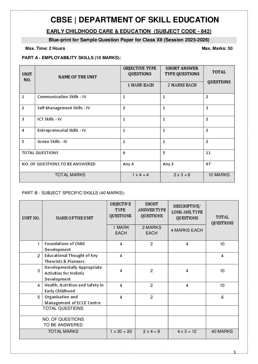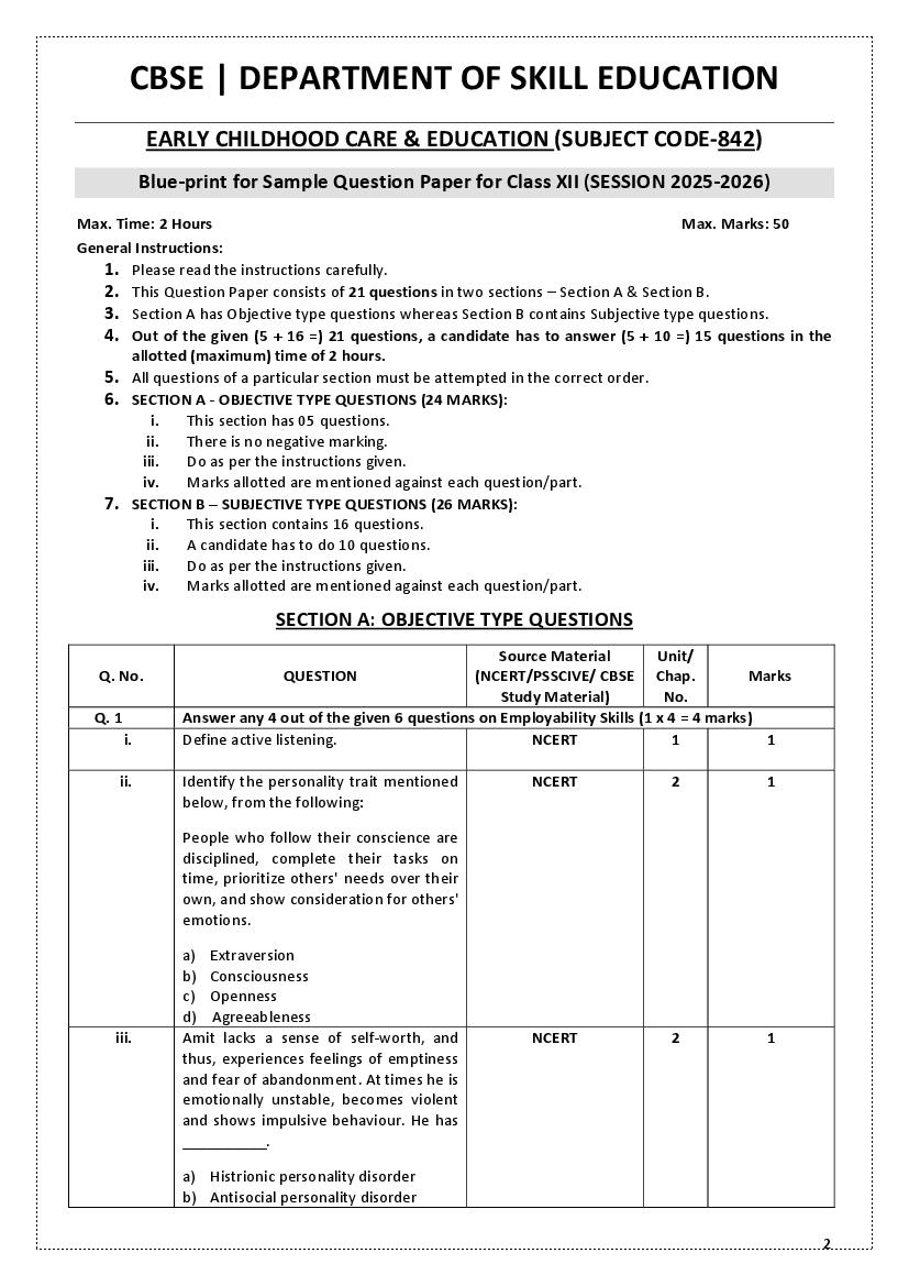 The complete CBSE class 12 Early Childhood Care and Education sample paper 2026 is as follows. However the download link for cbse sample paper Early Childhood Care and Education class 12 marking scheme is given above.