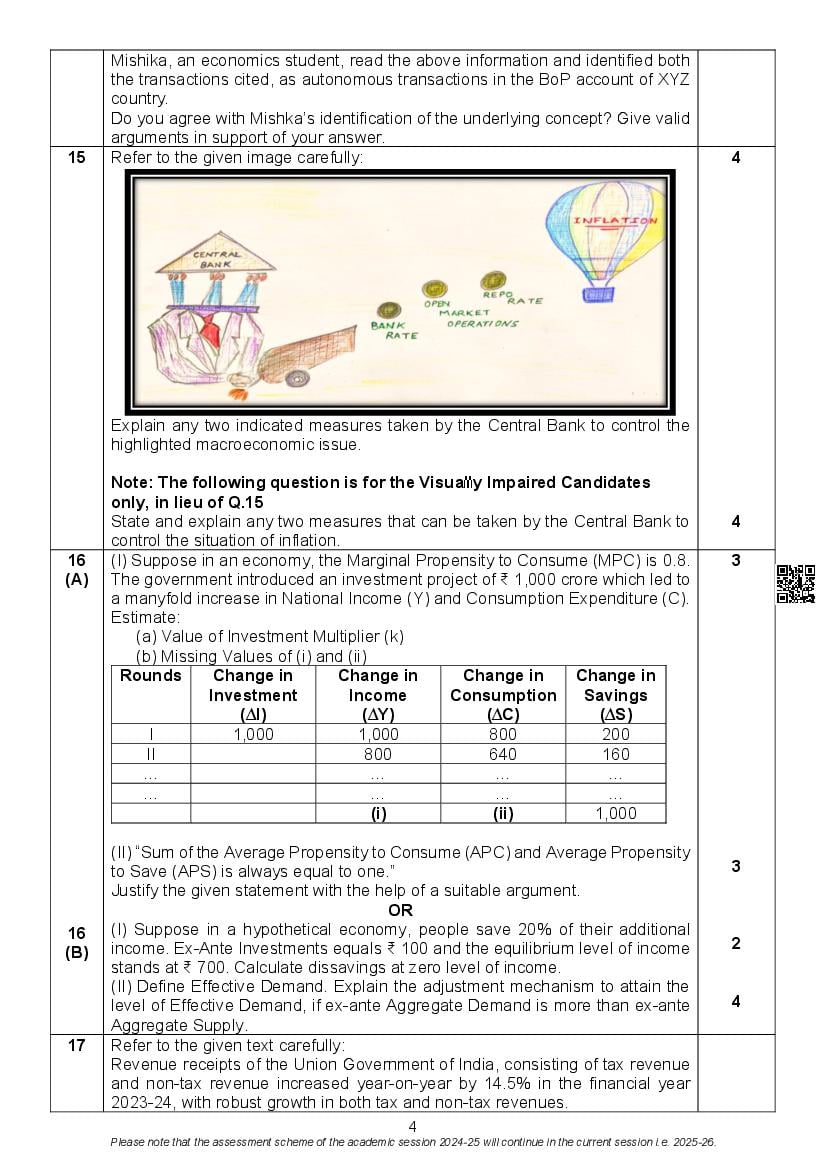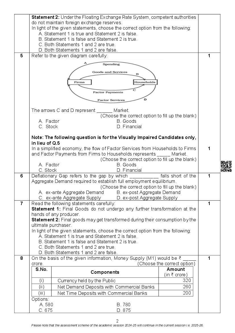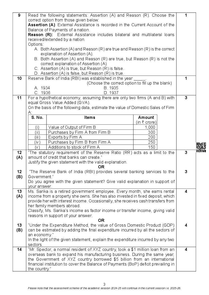 The complete CBSE class 12 Economics sample paper 2026 is as follows. However the download link for cbse sample paper Economics class 12 marking scheme is given above.