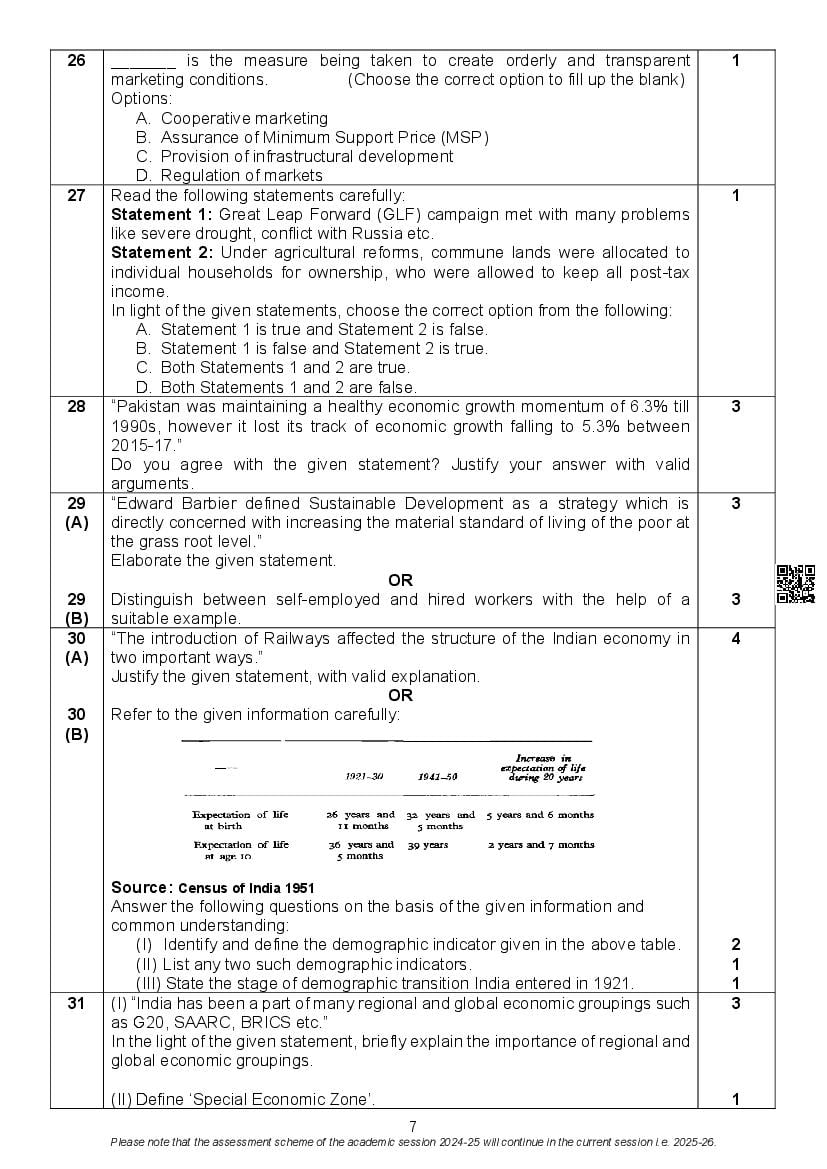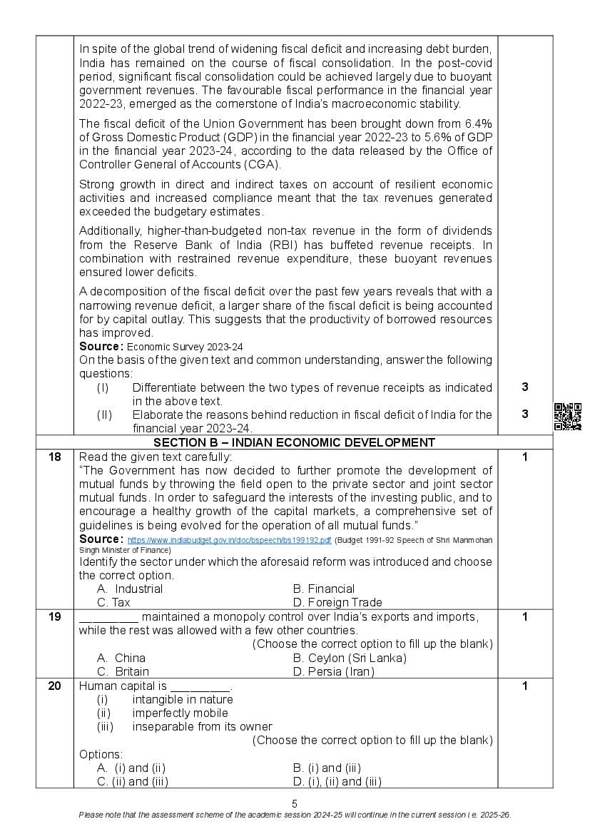 CBSE Class 12 Economics Sample Paper Solution 2025 PDF Download Link – Click Here to Download Solutions / Marking Scheme