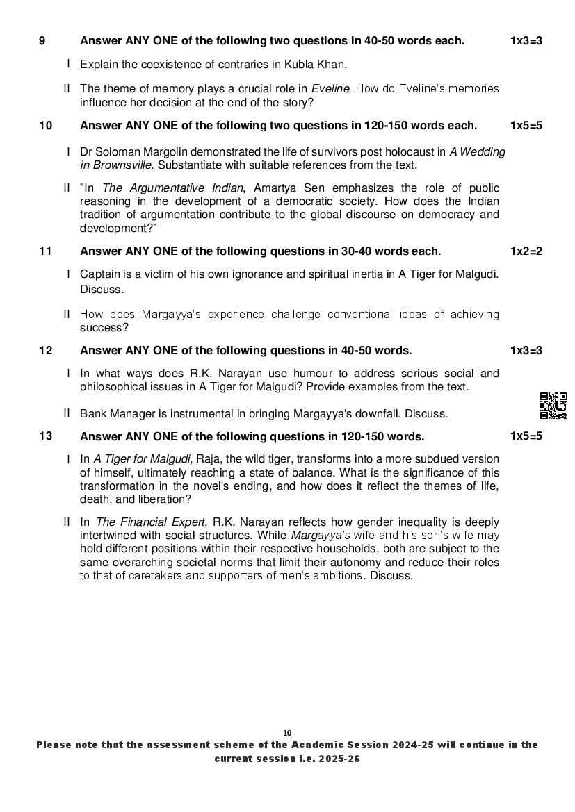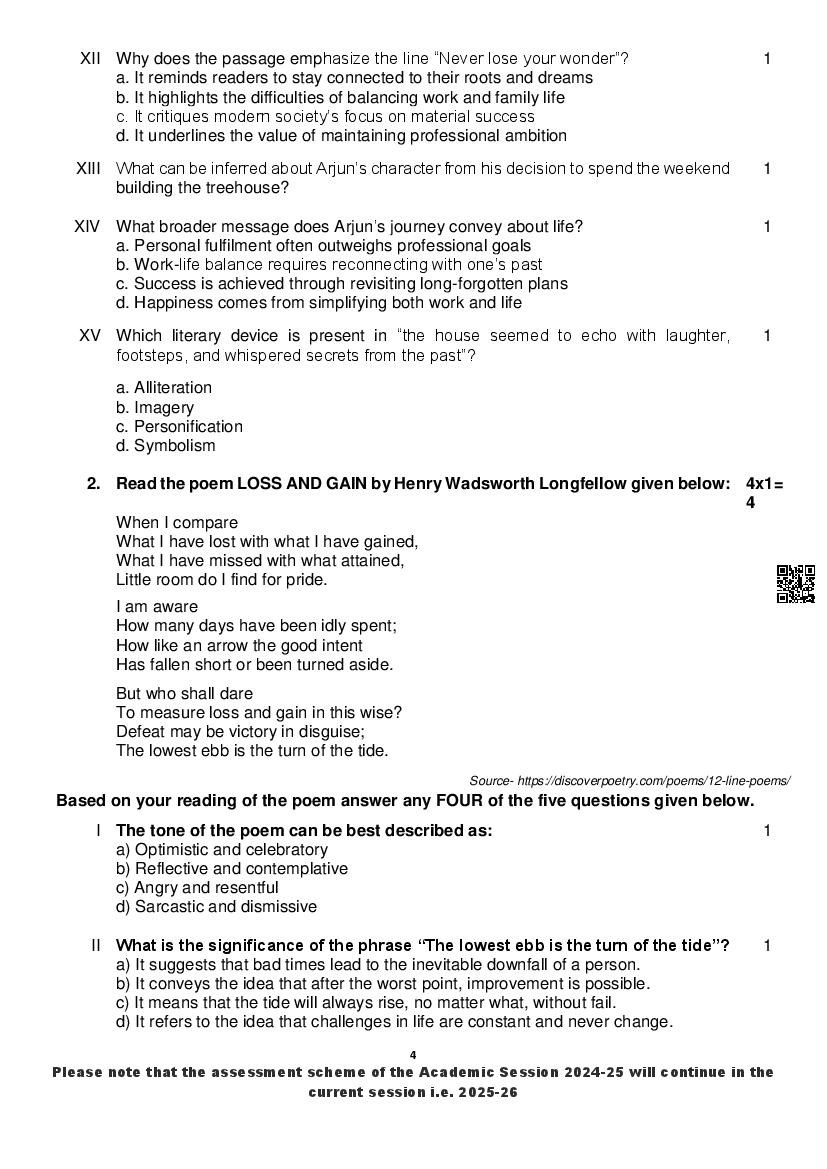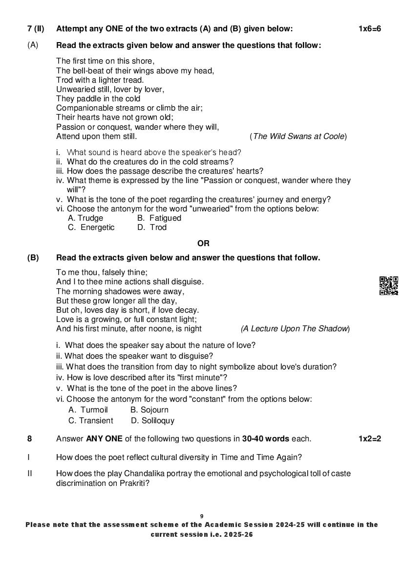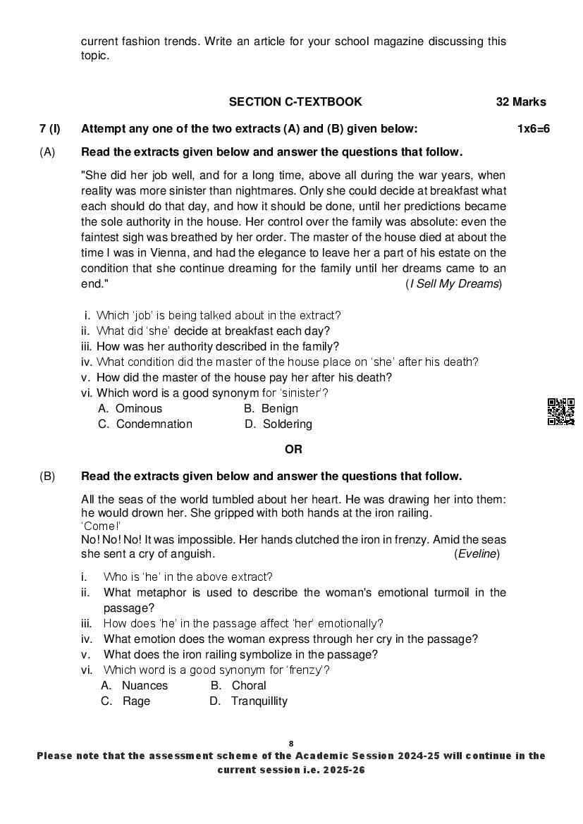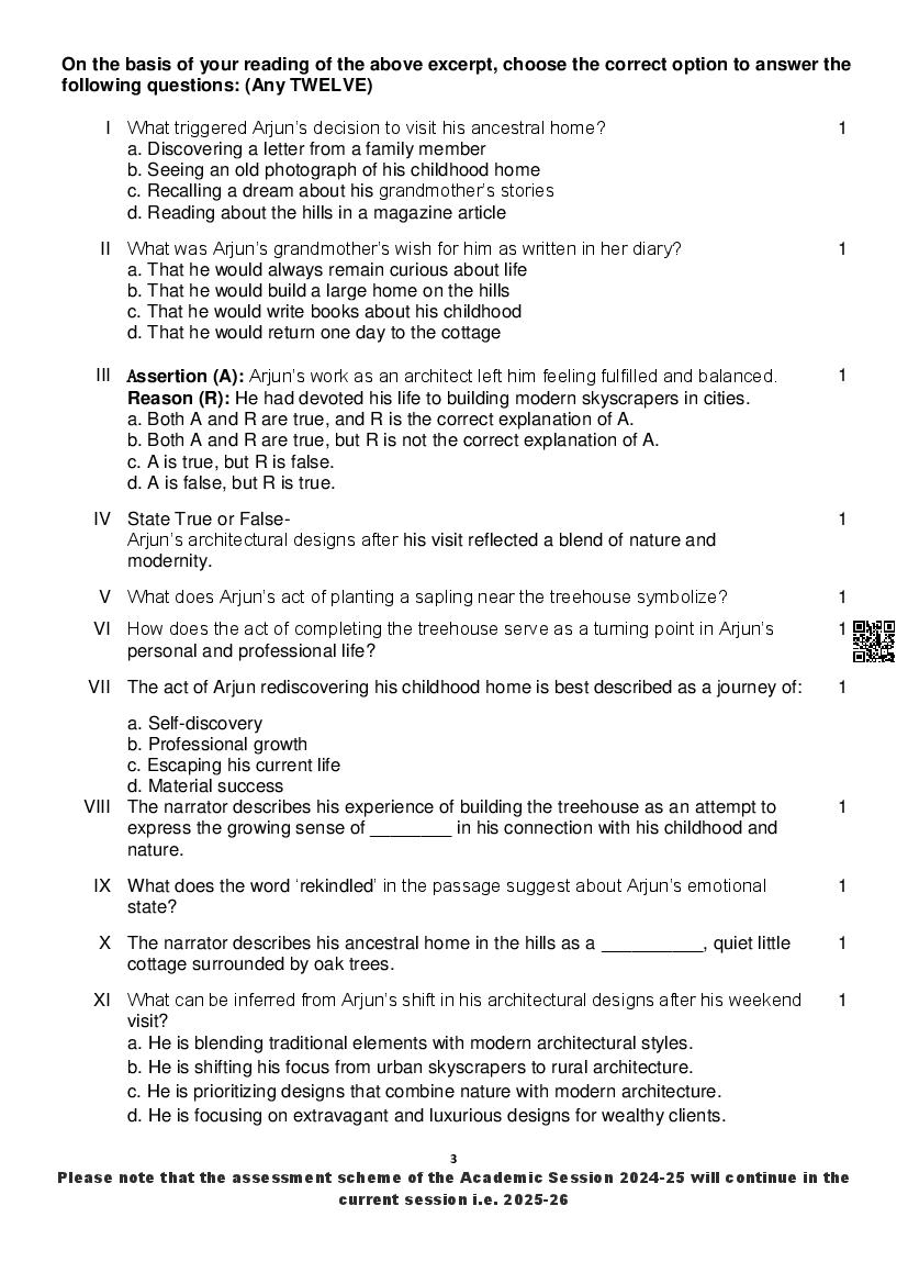 The complete CBSE class 12 English Elective sample paper 2026 is as follows. However the download link for cbse sample paper English Elective class 12 marking scheme is given above.