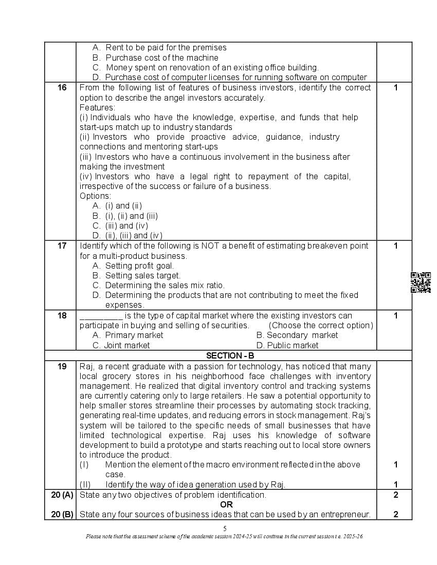 The complete CBSE class 12 Entrepreneurship sample paper 2026 is as follows. However the download link for cbse sample paper Entrepreneurship class 12 marking scheme is given above.